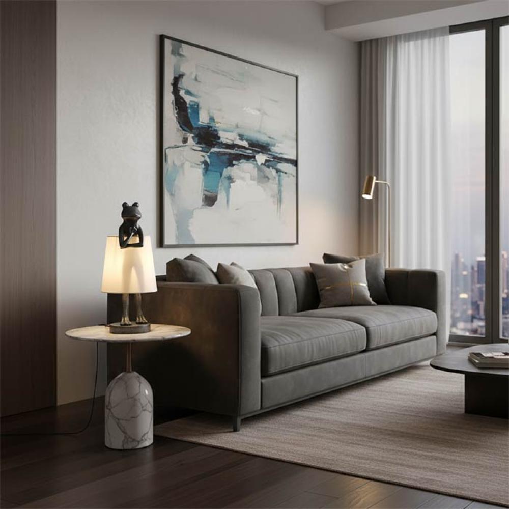 • تصميم تمثالي مميز على هيئة ضفدع رمادي بأسلوب فني