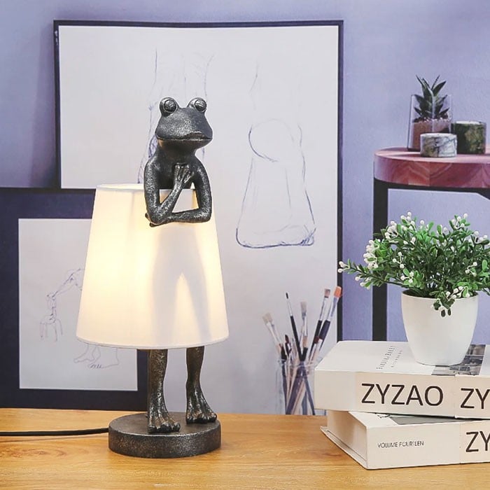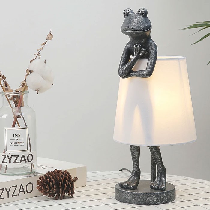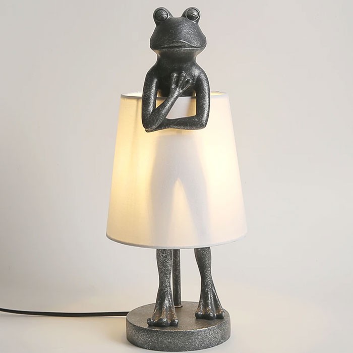 أباجورة ضفدع رمادي متكتف E27 تصميم فني مبتكر على هيئة ضفدع | إضاءة دافئة
