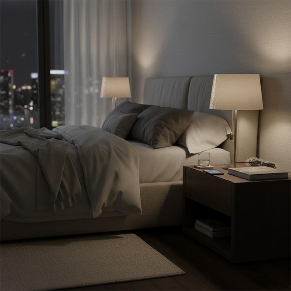 وتتميّز بكشاف قراءة مرن بقوة 3 واط، قابل للتوجيه حسب الحاجة، مع إضاءة LED دافئة ومريحة للعين (3000K) مزودة بتقنية الدايمر لضبط شدة الإضاءة.