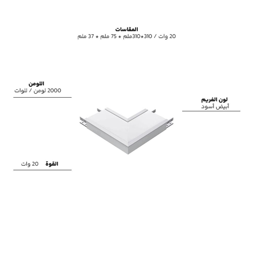 اكسسوار لينير دفن زاوية L W75T37 بقدرة 20 وات مع فريم أنيق متوفر باللونين الأبيض والأسود، يوفر مرونة عالية في تصميم الإضاءة المعمارية ويمنحك توزيع ضوء متجانس بزاوية إضاءة واسعة 110°. بفضل اعتماده على ليد أوسرام + ترانس أصلي، ستحصل على أداء ثابت، كفاءة عالية، وعمر افتراضي طويل يصل إلى 50,000 ساعة، مما يجعله مثاليًا لمشاريع الإنارة الاحترافية.