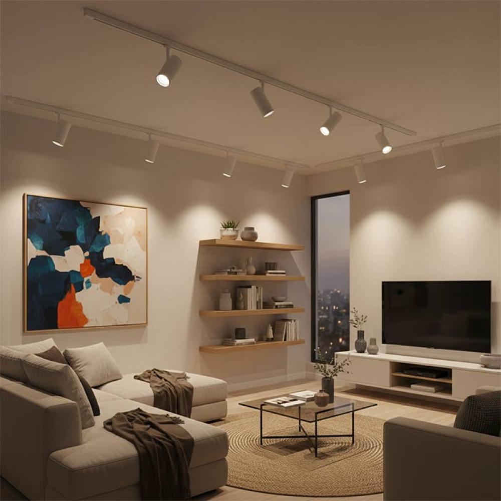 - مرن في التوجيه حيث يمكن تحريك الكشاف على المسار لتغيير زاوية الإضاءة حسب الحاجة.