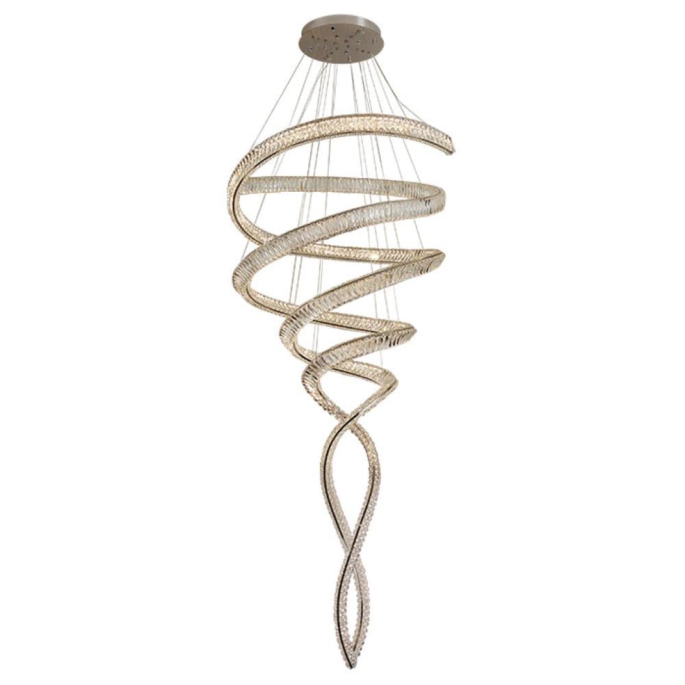ارتقِ بمستوى الإبهار في مساحتك مع هذه الثريا الفاخرة بتصميمها الحلزوني الفريد ، تجمع بين انسيابية الحركة وتوهّج الكريستال لتعكس الضوء بانسياب هندسي ساحر ، مثالية للفلل ذات الأسقف العالية ، السلالم المركزية ، المداخل الفاخرة ، أو المشاريع الراقية التي تبحث عن عنصر بصري فاخر وفني في الوقت نفسه.
