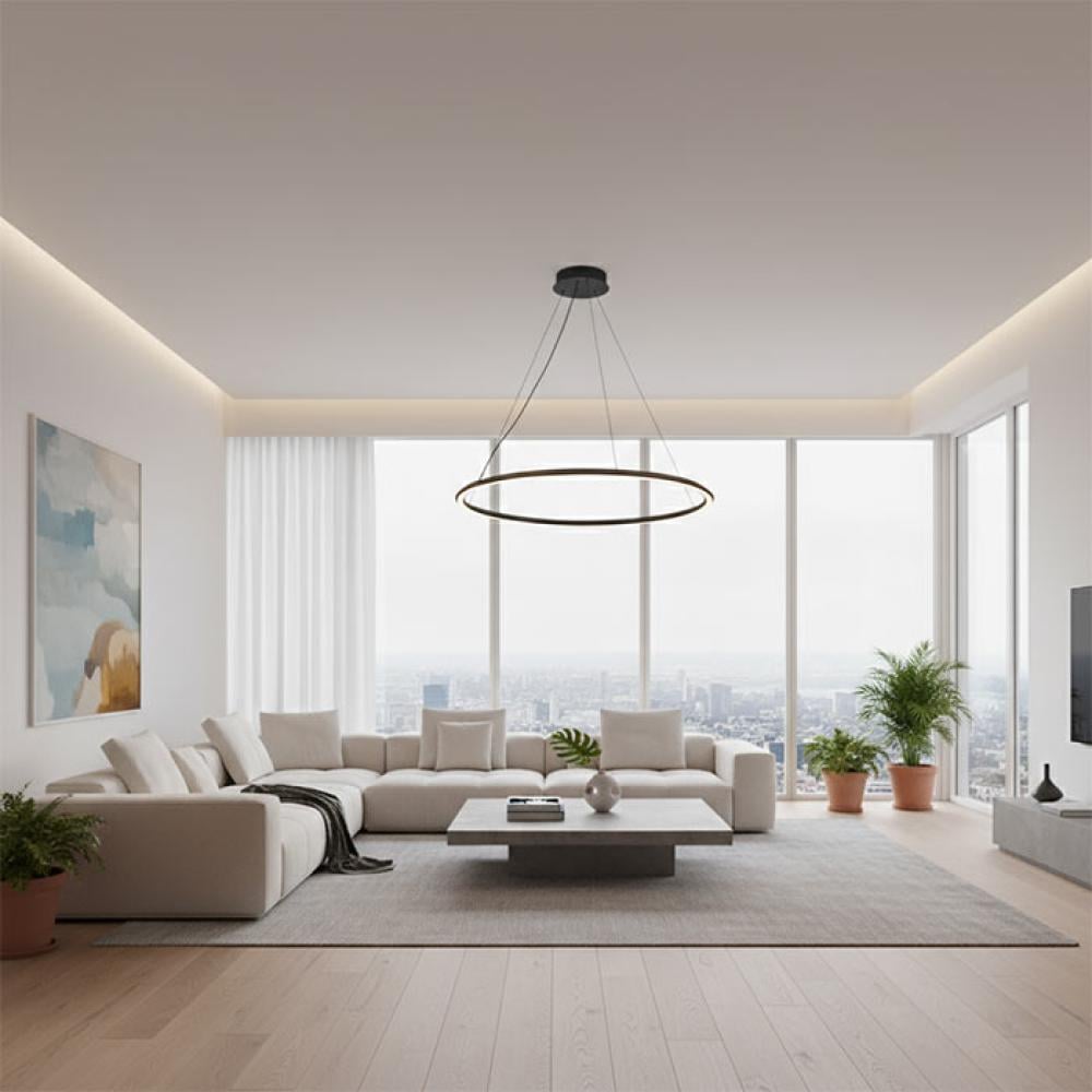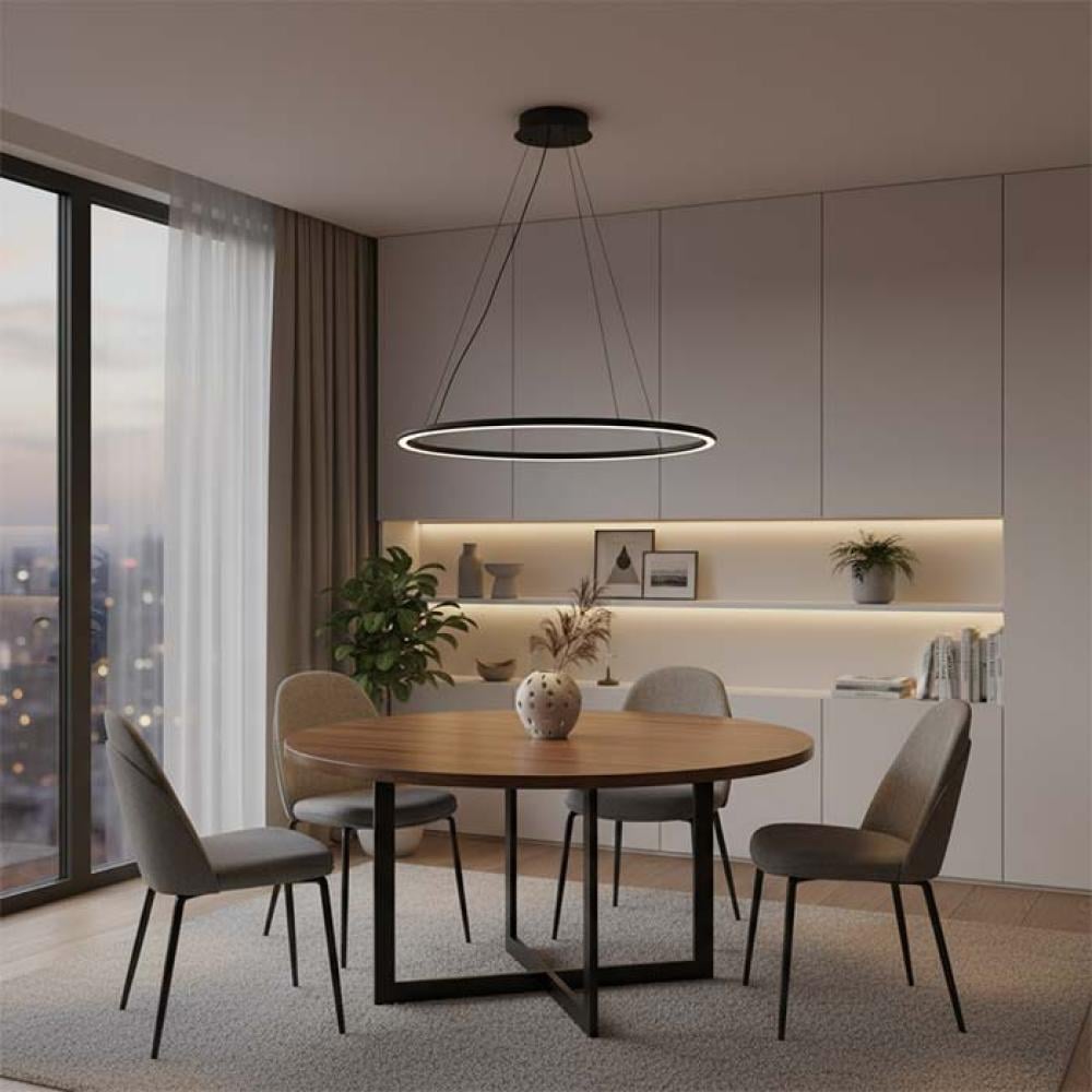 ثريا رنج نحيف أسود HL779 ، تصميمها الدائري الرقيق مع اللون الأسود يمنح ديكورك لمسة من الحداثة والفخامة، بينما توفر تقنية Bridgelux LED إضاءة قوية، متوازنة، وموفرة للطاقة. بفضل دقة الألوان العالية CRI90، تنبض الألوان في مساحتك بالحيوية الطبيعية، مع إضاءة ورملايت 3000K التي تضفي أجواءً دافئة ومريحة.