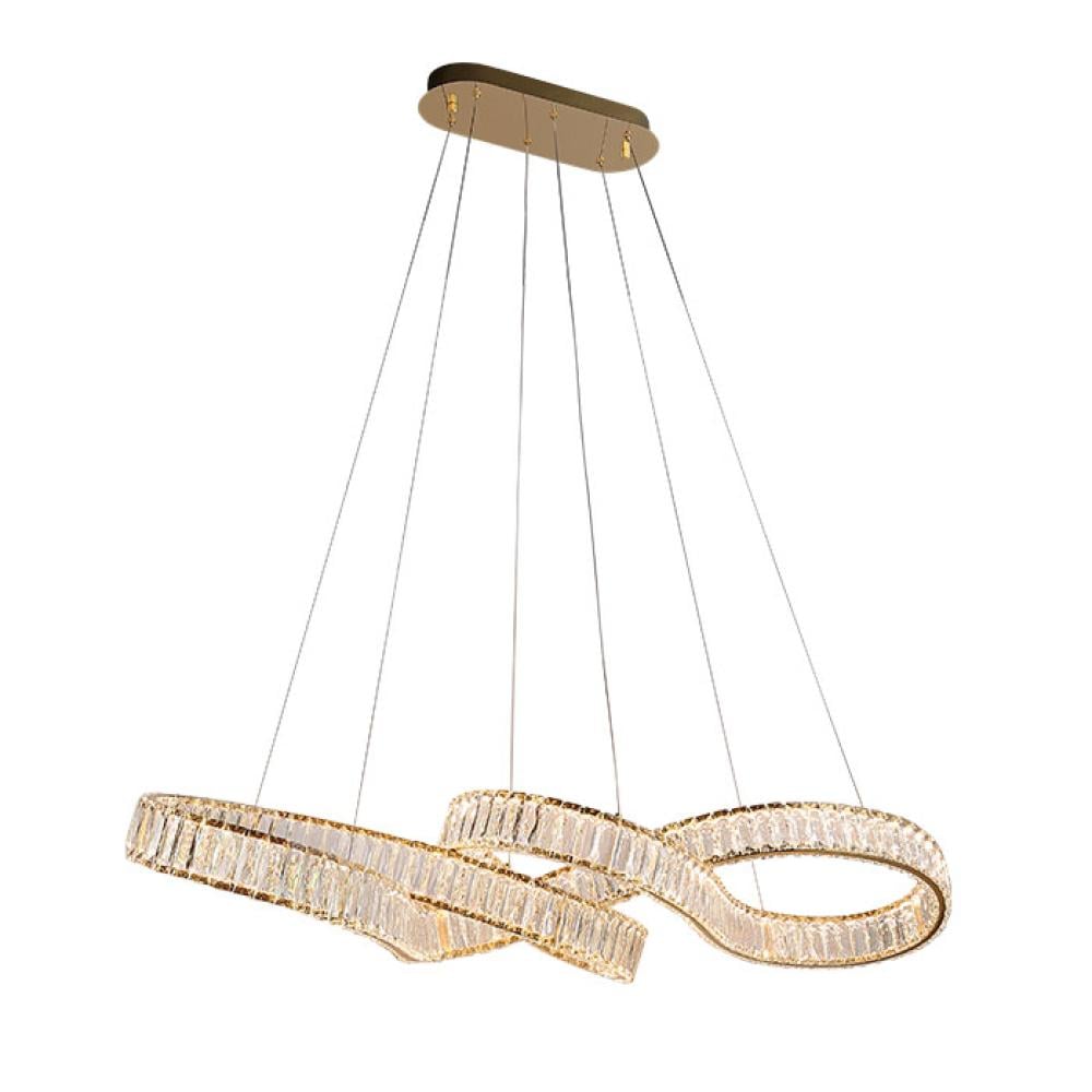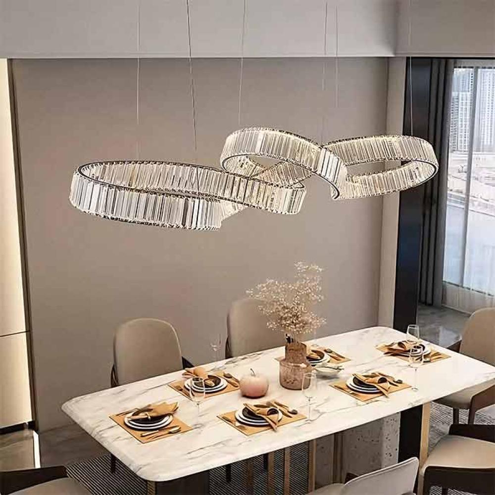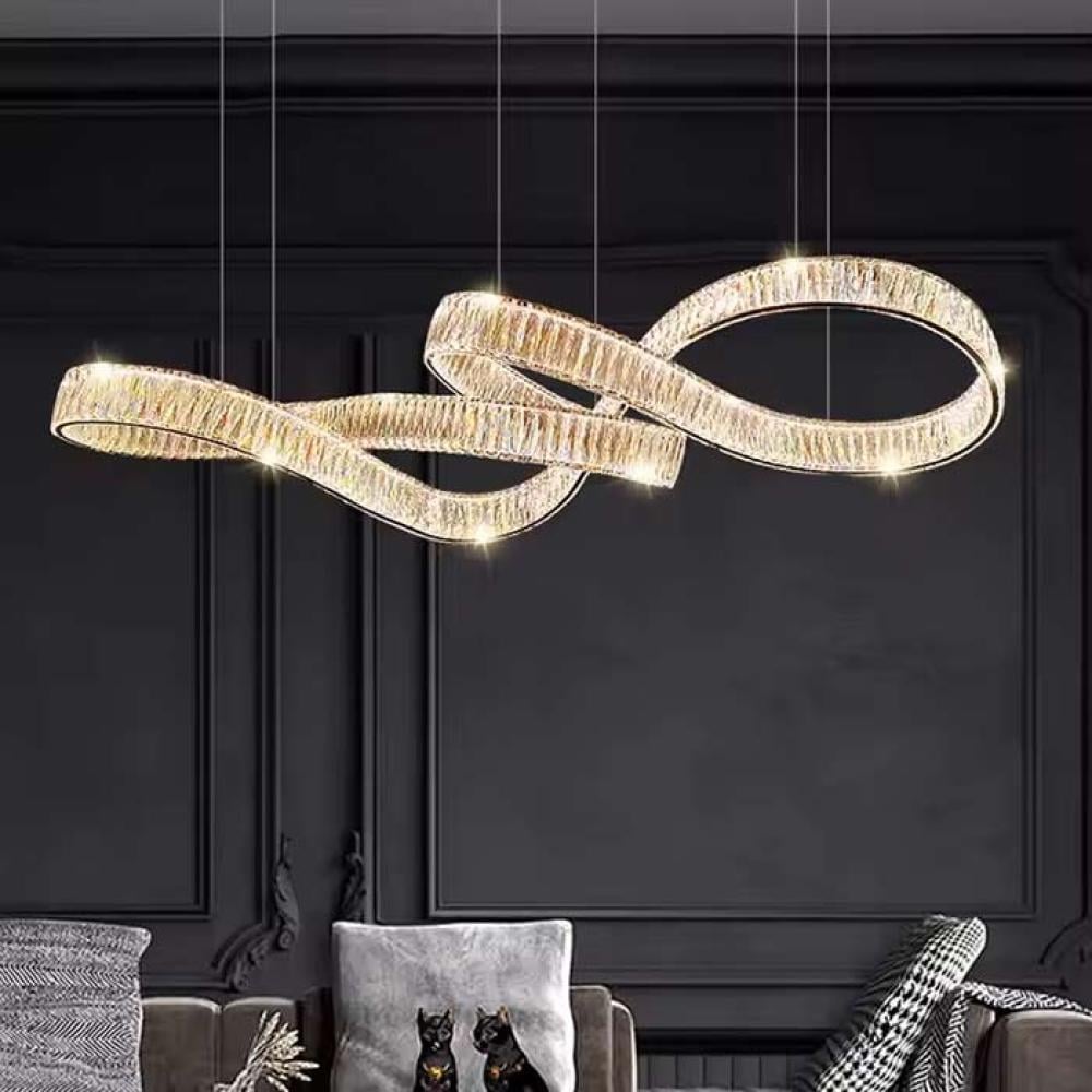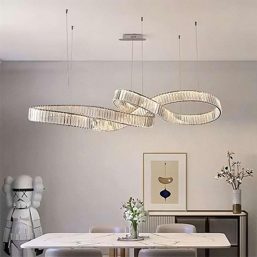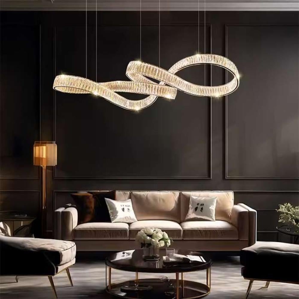ثريا نود كريستال ذهبي أو كروم موديل H89621، تصميم مستوحى من الانسيابية المعمارية، يتكوّن من حلقات كريستالية مترابطة تتدلّى بأناقة في تشكيل هندسي معاصر. يمنحك هذا التصميم المذهل إحساسًا بالحركة والتوازن في آنٍ واحد، وتكمله إضاءة ليد ورم لايت 3000K لتوفير أجواء دافئة وفاخرة، مما يجعلها الخيار المثالي لعشاق الإضاءة الفخمة والديكور المودرن.