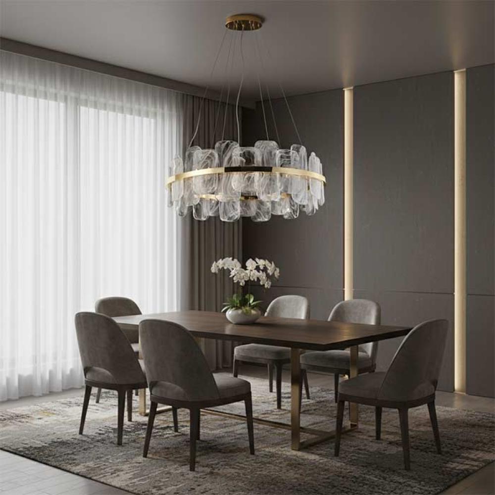 ارتقِ بمستوى الفخامة في مساحتك مع ثريا "نيلي" الفريدة من نوعها، بتصميم هندسي نحاسي أنيق وتفاصيل من القزاز المصنوع يدويًا بألوان نيلية مدهشة ، هذه الثريا ليست مجرد إنارة، بل تحفة معمارية تدمج بين الحداثة والحرفية العالية ، مزودة بتقنية LED قوية تمنحك إنارة دافئة ومنتشرة بقوة 135 إلى 150 وات .
