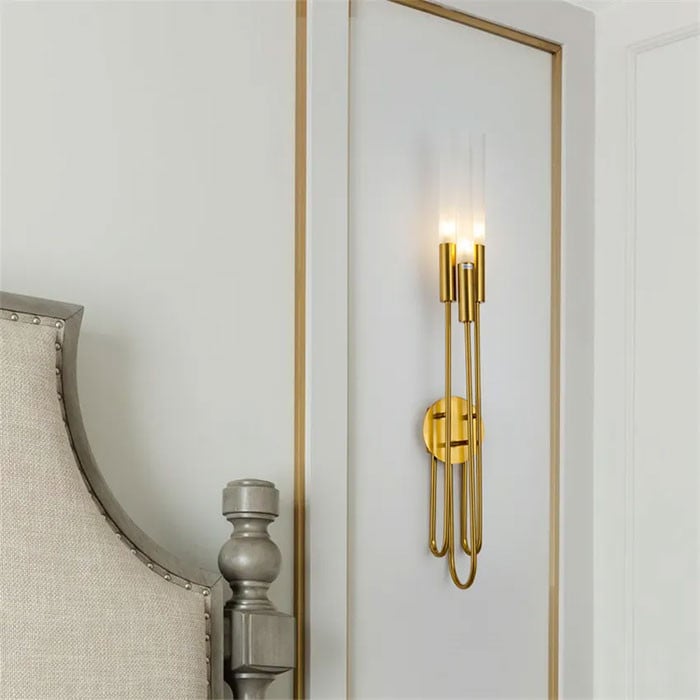 جداري أعمدة ذهبي بتصميم عصري فاخر يجمع بين البساطة والفخامة، يتميز بهيكل معدني باللون الذهبي الفاخر مع توزيع الإضاءة بأسلوب عمودي يمنح الجدار لمسة جمالية مميزة. يعمل بثلاث لمبات G9 لتوفير إضاءة قوية ومتوازنة تضيف أجواء دافئة وفاخرة للمكان.