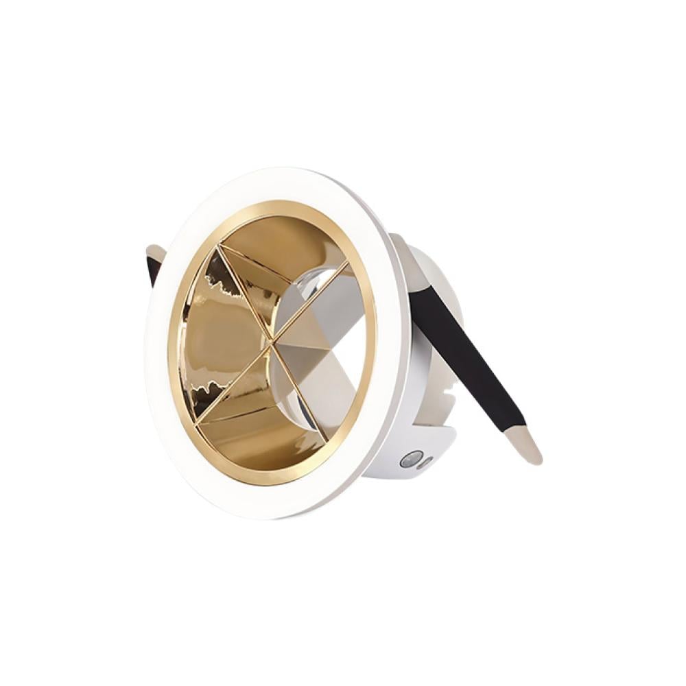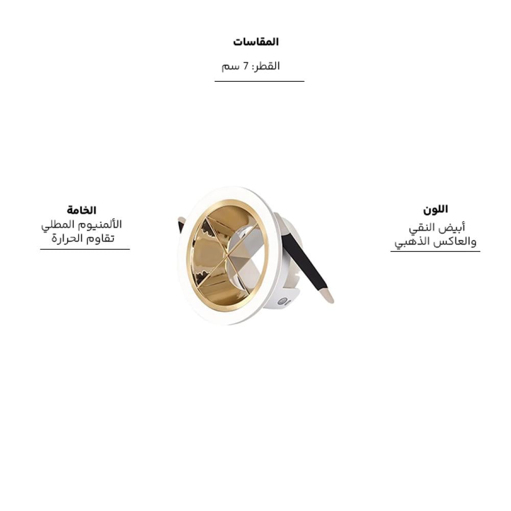 فريم سبوت DCXB بقطر 7 سم تصميمه الأنيق يجمع بين اللون الأبيض النقي والعاكس الذهبي العميق، مما يعزز من فخامة المكان ويضبط توزيع الضوء بدقة عالية مزوّد بحلقة مقاومة للتوهج (Anti-Glare)، ليضمن راحة العين بدون أي سطوع مزعج.