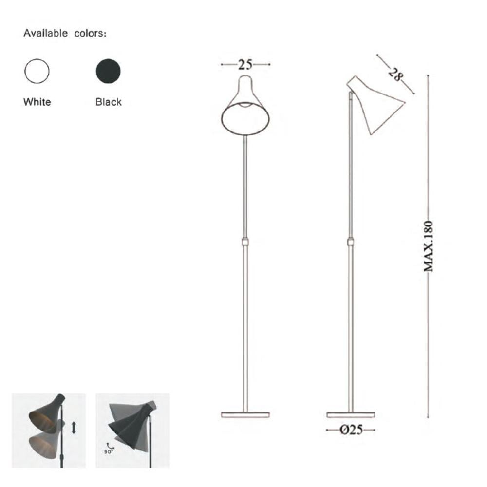 ستاند إضاءة مودرن متحرك D33005 – تصميم قابل للتوجيه | لون أبيض أو أسود