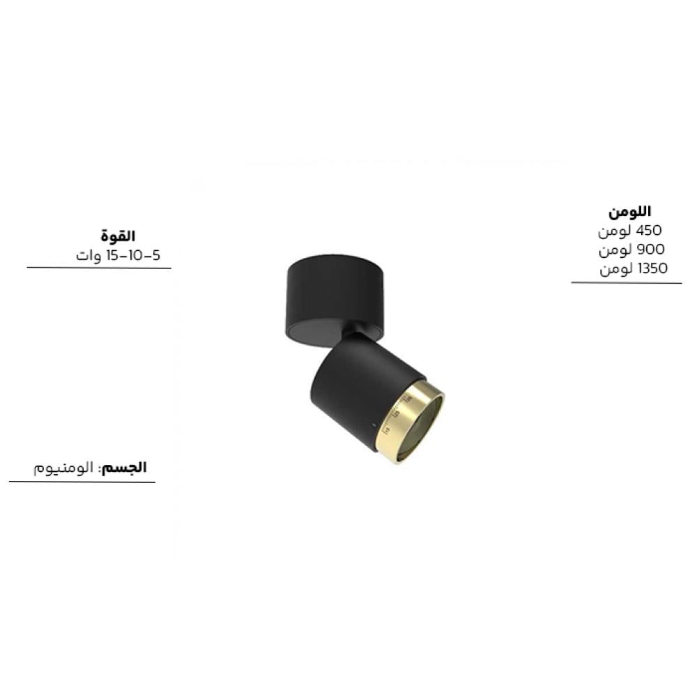 أضف لمسة فاخرة إلى مساحتك مع كشاف السلندر التوجيهي باللون الأسود مع الحافة الذهبية، المصمم ليمنحك إنارة مرنة بزاوية متغيرة من 15° إلى 35° لتناسب مختلف الاحتياجات. يجمع هذا الكشاف بين الأداء العالي والتصميم العصري الأنيق ليكون الخيار المثالي للمشاريع الراقية والمنازل العصرية.
