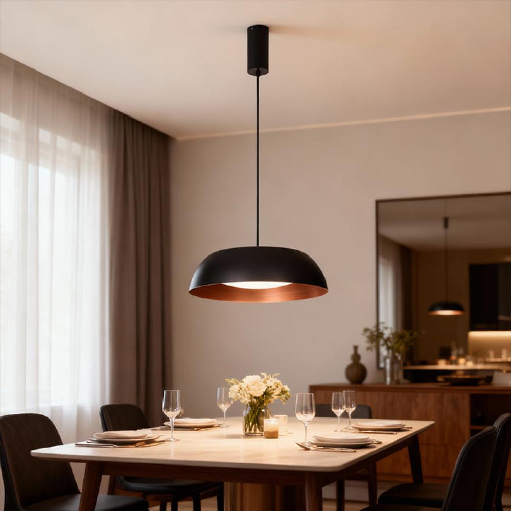 علاقي دوم فريم أسود مع لمسة داخلية نحاسية أنيقة، يجمع بين الفخامة العصرية والتفاصيل الدقيقة التي تبرز جمال التصميم. بفضل خاماته عالية الجودة، يمنح إضاءة ناعمة ودافئة تضيف لمسة من الراحة والتميز لأي مساحة. يتوفر بثلاثة مقاسات مختلفة لتلبية كافة الاحتياجات سواء للمساحات الصغيرة أو الكبيرة.