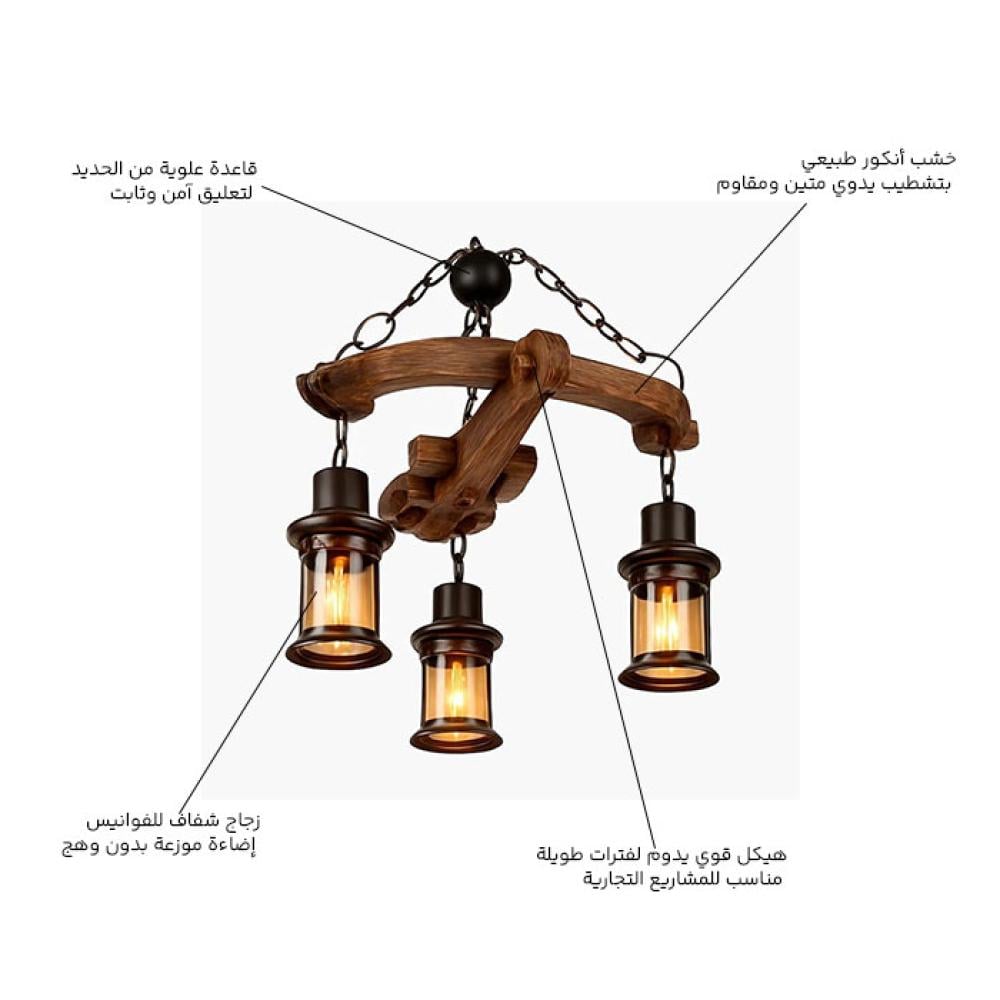 يحتوي العلاقي على ثلاث فوانيس زجاجية شفافة موزعة بطريقة متناسقة تمنح المكان إضاءة دافئة ومريحة، ما يجعله مثاليًا لخلق أجواء هادئة ومميزة في المساحات المفتوحة أو الغرف ذات الطابع الريفي أو الصناعي.
