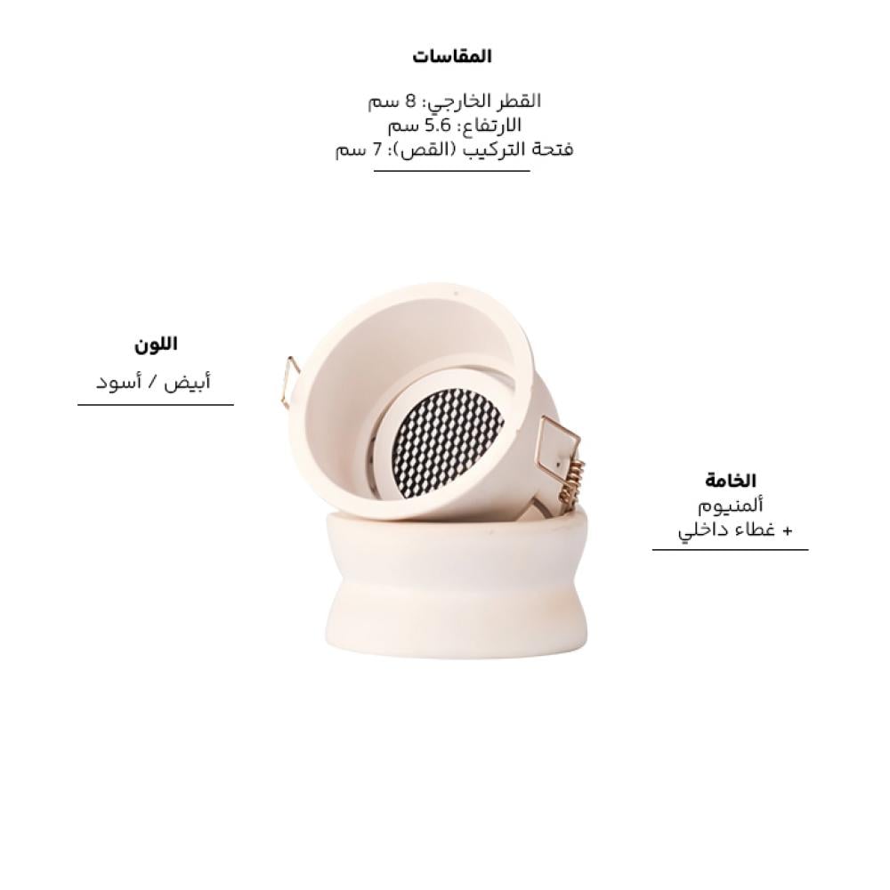 فريم سبوت دائري غاطس بتقنية هني كمب من الألمنيوم، مصمم ليمنحك إضاءة مريحة بدون وهج بفضل الغطاء الداخلي السداسي المانع للتوهج ، يتميز بهيكل متين من الألمنيوم عالي الجودة مع تصميم أنيق بلمسات عصرية، ومتوفر بلون أبيض أو أسود ليتناسق مع مختلف أنماط التصميم الداخلي.