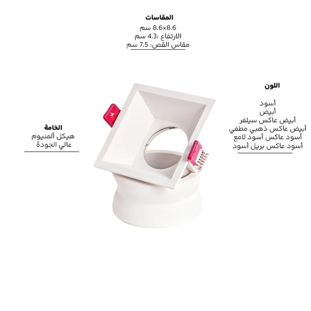 فريم سبوت ديب سكوير D-502SQ هو الخيار المثالي لك يأتي بتصميم مربع عميق بلمسة عصرية، ويوفر تحكمًا أفضل في اتجاه الإضاءة بفضل الرأس المتحرك، كما يعمل على تقليل التوهج لتعزيز الراحة البصرية في المساحات الداخلية.