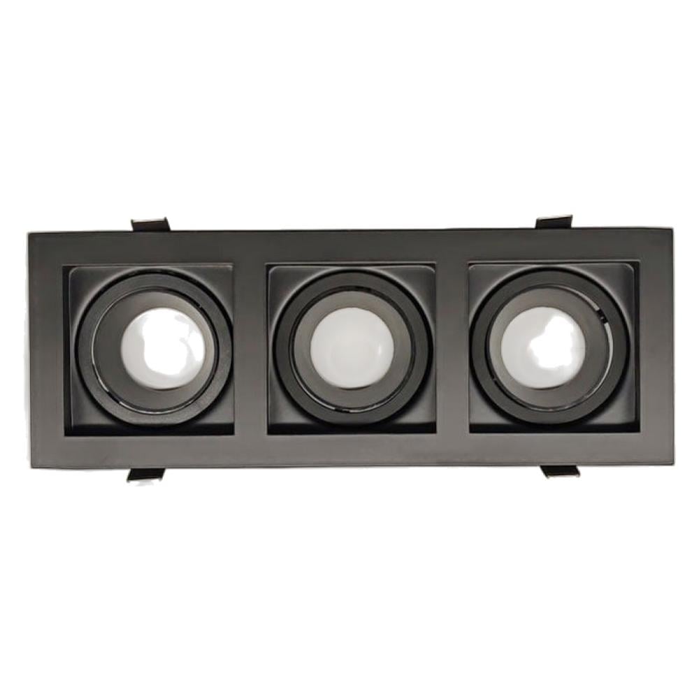 فريم سبوت لايت H704-3 PC ، تصميم مربع بثلاث فتحات غاطسة متحركة يتيح لك توجيه الضوء بدقة نحو التفاصيل المعمارية أو عناصر الديكور، مع حماية العين من الانعكاسات بفضل السطح الداخلي المضاد للتوهج ، مصنوع من خليط متين من الألمنيوم والبلاستيك PC لمتانة وخفة، ومتوفر بعدة ألوان عصرية تنسجم مع أي تصميم داخلي.