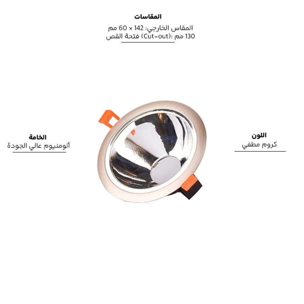 فريم سبوت لايت داخلي كروم مطفي 13 سم بتصميم عصري من الكروم المطفي ، مصنوع من الألمنيوم عالي الجودة ، ويتميز بانعكاس ضوء واضح ومركز بفضل العدسة العميقة التي تقلل التوهج وتوزع الضوء بشكل مثالي ، فريم دائري سهل التركيب بمقاس قطع 13 سم ، يجمع بين الأداء القوي والشكل الأنيق.