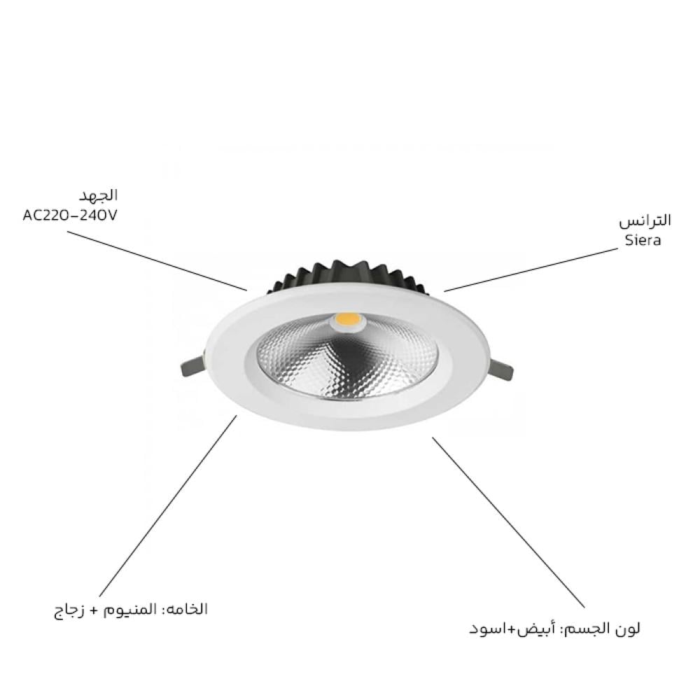 امنح مساحتك الداخلية لمسة إضاءة احترافية مع كشاف ليد داخلي داون لايت موديل 8897 من Siera، المصمم خصيصًا لتوفير ضوء ناعم ومريح للعين بفضل تصميمه العميق المضاد للتوهج (UGR ≤ 25) وعدسة واسعة بزاوية 100° ، يتوفر الكشاف بقدرات متعددة تبدأ من 7 وات وحتى 50 وات، مع ثلاث درجات لون للإضاءة: ورم لايت 3000K – شمسي 4000K – أبيض بارد 6500K، مما يجعله مثاليًا للاستخدامات السكنية والتجارية التي تتطلب توزيع إضاءة ناعم ودقيق، خصوصًا في الأسقف المنخفضة أو الجبسية.