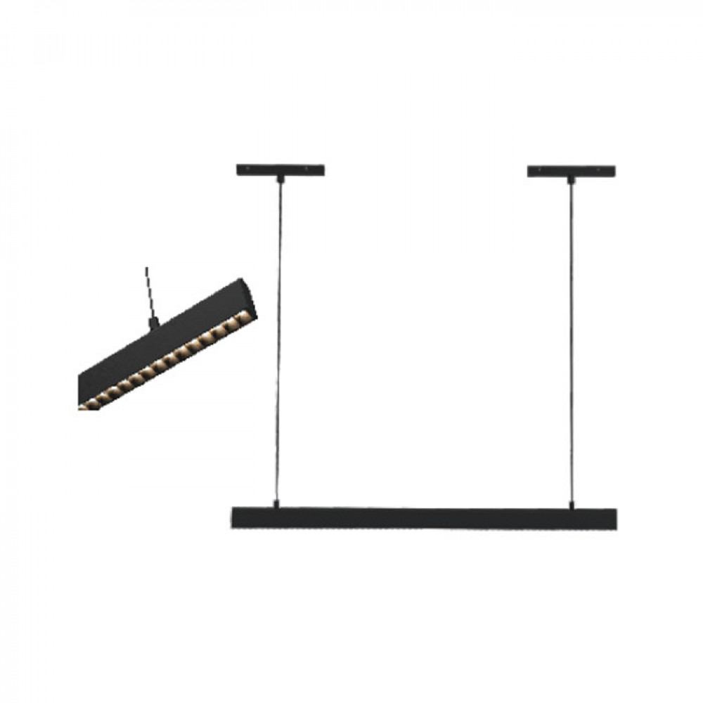 يتم تعليقه على السقف باستخدام قضبان تعليق أنيقة، مع توصيل مباشر على نظام التراك المغناطيسي لتوزيع إضاءة مركزة وآمنة.