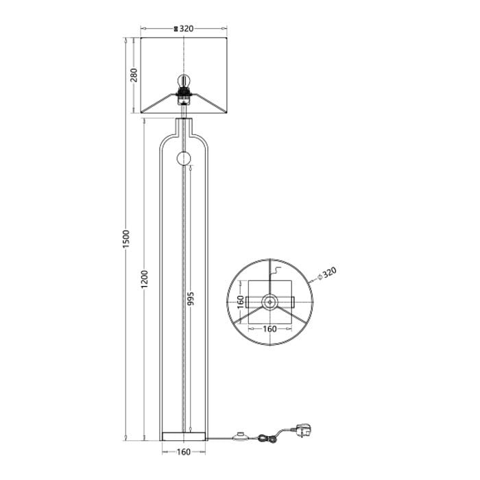 - الأبعاد: قطر القاعدة 32 سم × الارتفاع 150 سم