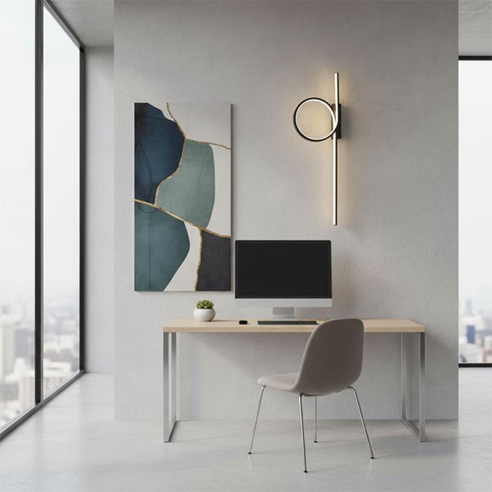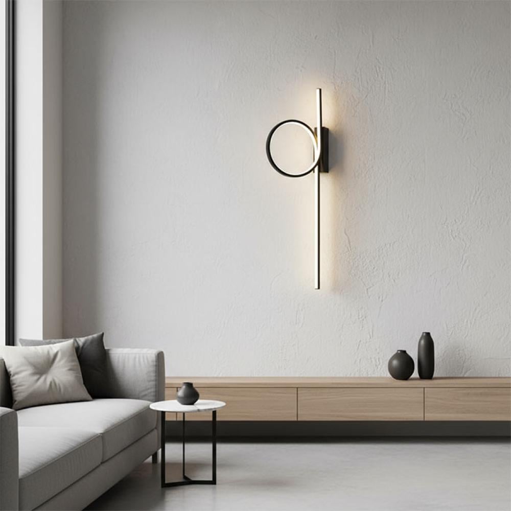 ابليك جداري مودرن مسار أسود W6806 بتصميمه العصري يجمع بين الخطوط المستقيمة والدائرة المتداخلة ليمنح الجدران لمسة فنية فريدة. يعمل بتقنية LED عالية الكفاءة ليضيء المساحة بشكل أنيق وموفر للطاقة. مصنوع من الألمنيوم المتين باللون الأسود، مما يضمن المتانة مع لمسة عصرية تناسب مختلف أنماط الديكور. تصميمه الهندسي يمنحه حضورًا مميزًا في أي مساحة داخلية.