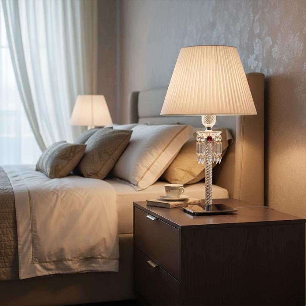 The Baccarat Classic Crystal Single Table Lamp 9031-1TL is the perfect choice for those seeking elegant, luxurious lighting that adds warmth and sophistication to any space. It features high-purity K9 crystal that beautifully reflects light with a dazzling sparkle, complemented by a polished chrome frame for a refined look that lasts. Its sleek vertical design and fabric shade (available in white or black, sold separately) give it a timeless presence that suits both modern and classic interiors.