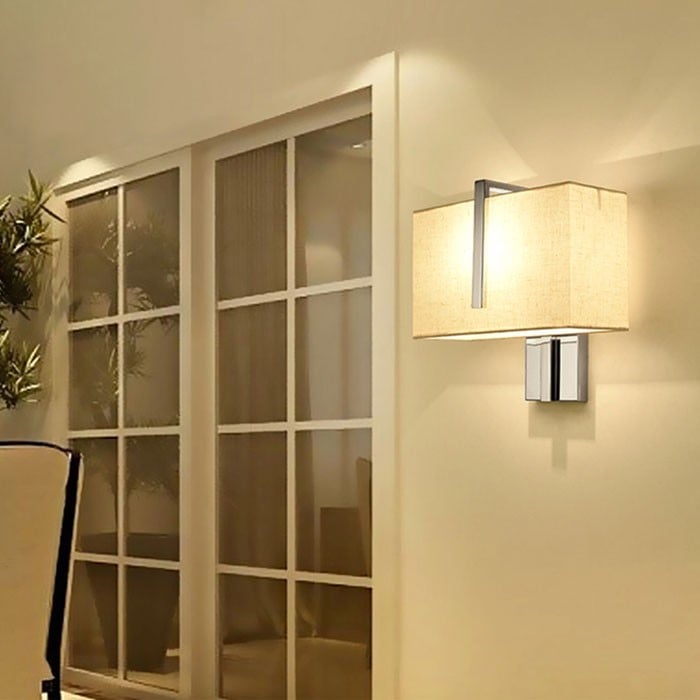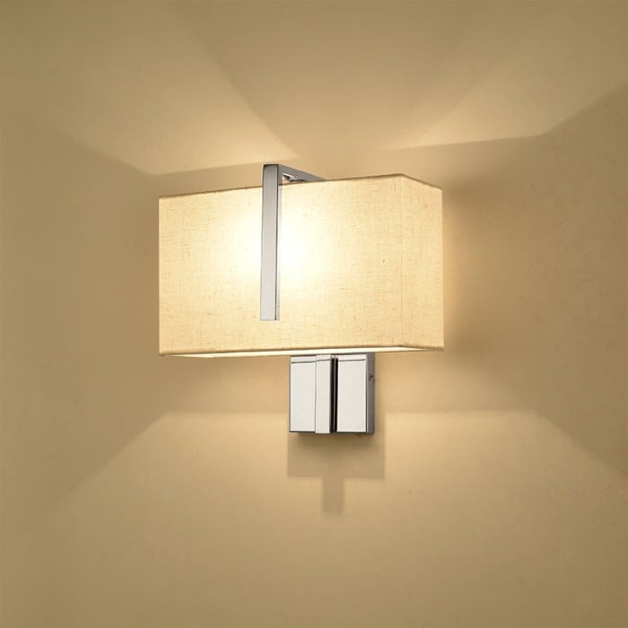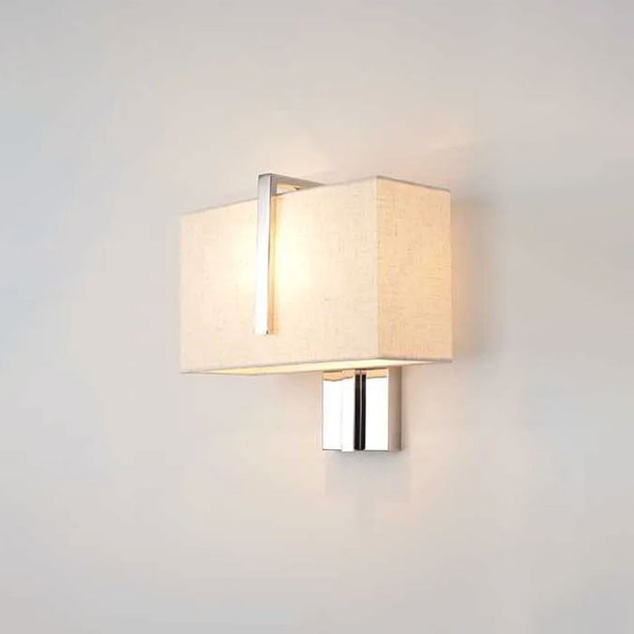 BJ051 Hotel Wall Light – Chrome × Beige Rectangular Shade | 29×30 cm | E27 Bulb