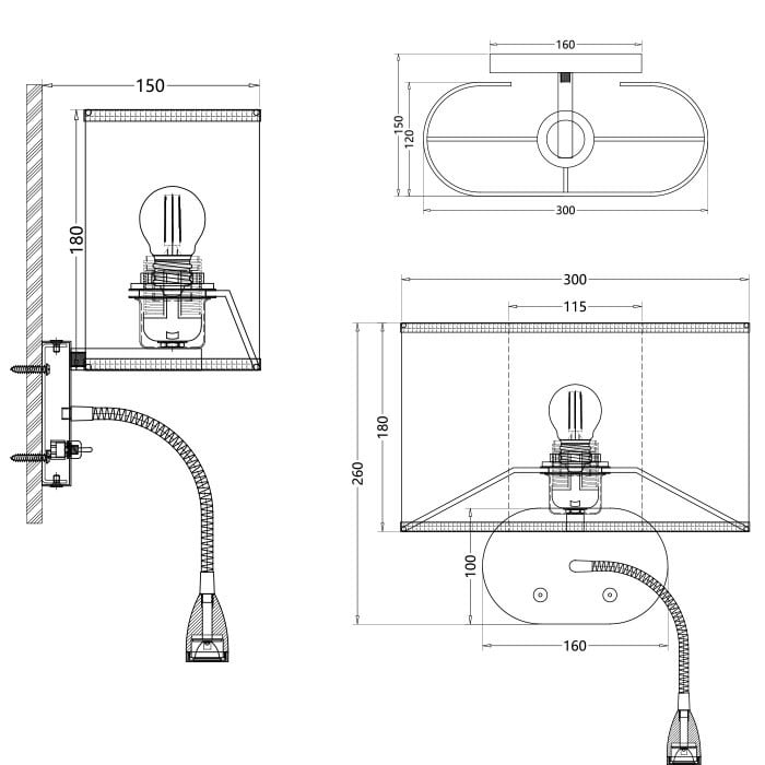 - Type: Hotel-style wall light with reading lamp