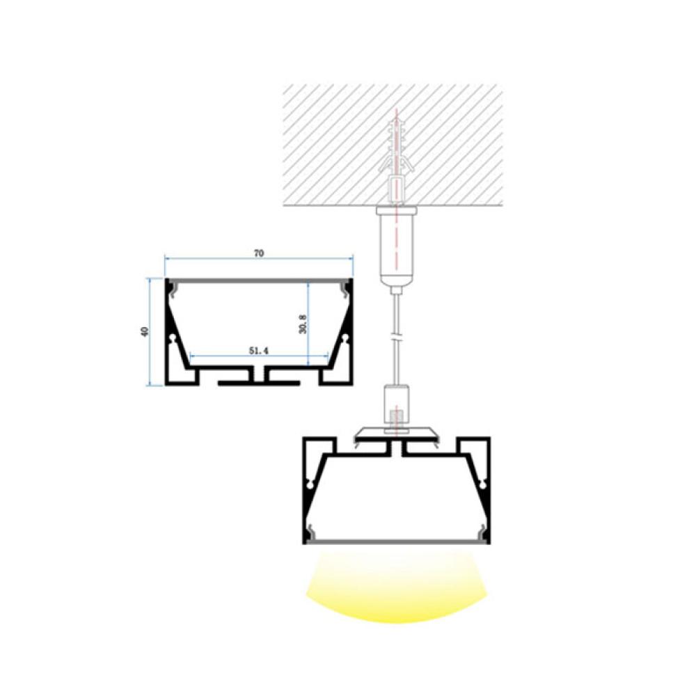 Exposed or pendant linear aluminum profileDimensions:Width: 7 cmHeight: 4 cmLength: 2 meters*The displayed price is for a 2-meter piece.