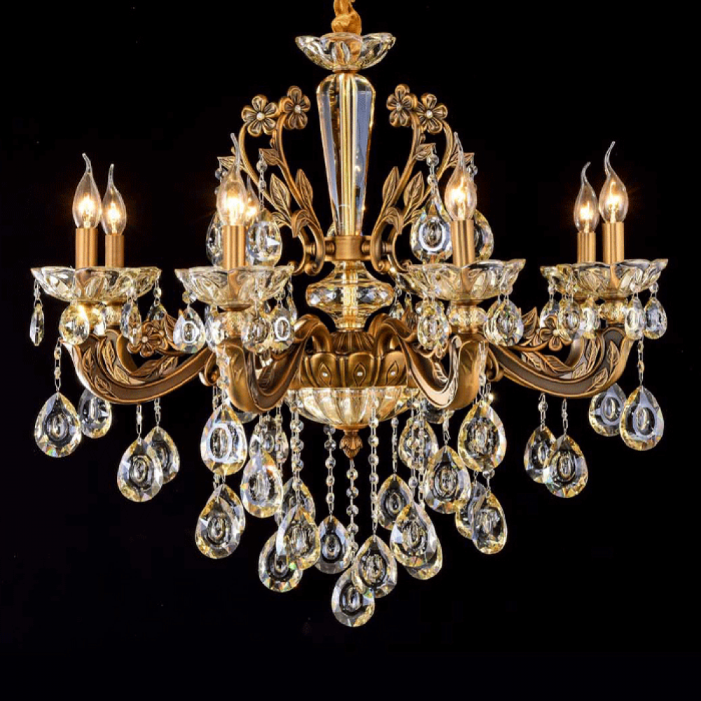 The 8140-8 crystal chandelier is the epitome of refined classic luxury. It reflects traditional Arab elegance with a refreshed contemporary spirit. Featuring intricately carved curved metal arms and adorned with high-purity K9 crystals in a transparent champagne hue, it casts a soft, opulent glow—perfect for upscale interiors.