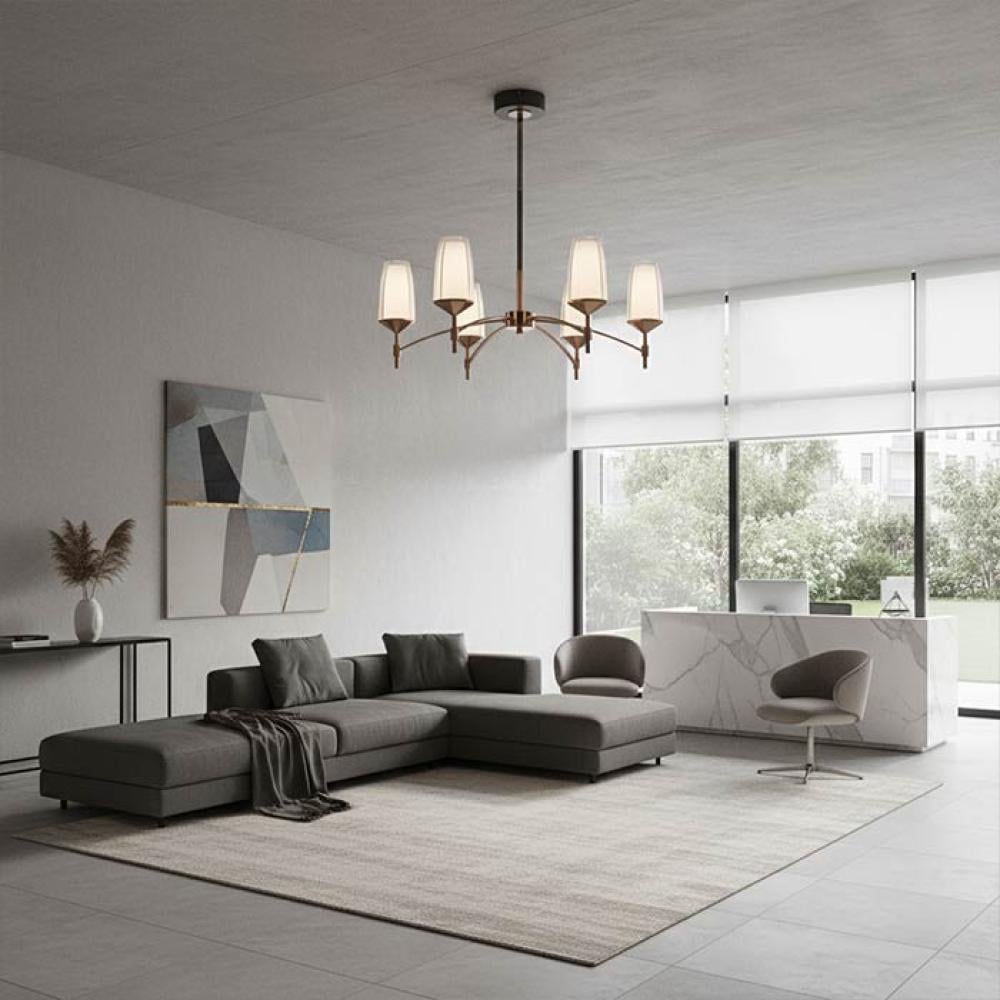 A modern circular chandelier with a distinctive design that combines clear plain glass and an elegant oval arrangement, making it a perfect decorative piece that provides warm and comfortable lighting with 3000K Warm Light.