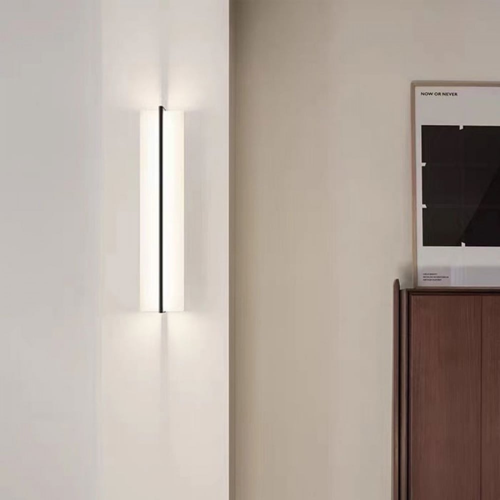 Contar Black and White Wall Sconce - 10772W is a wall lamp with a contemporary design, featuring a black and white finish that adds a luxurious touch to indoor spaces. Operating at 18 watts, it is suitable for providing distinctive lighting in homes and offices. The lamp's dimensions are: length 92 cm, width 19 cm, and height 13 cm. This sconce is an ideal addition to areas requiring distinctive wall lighting.