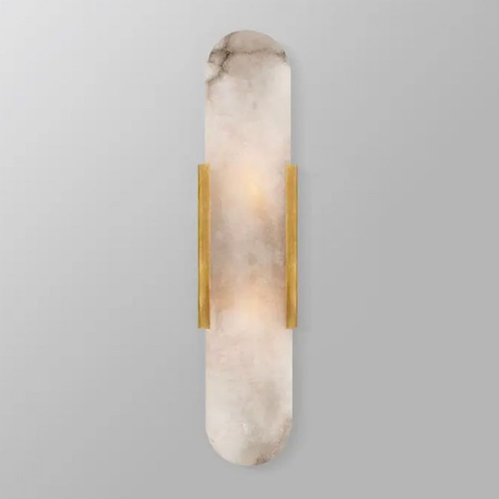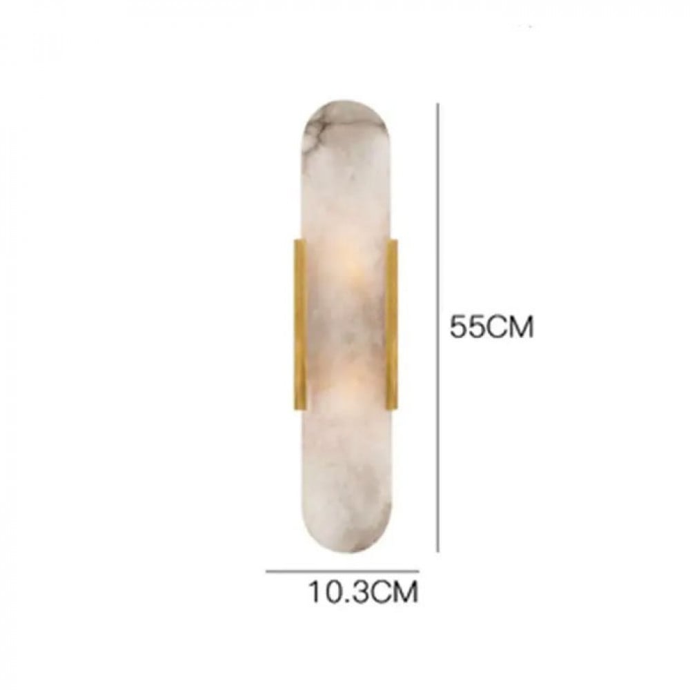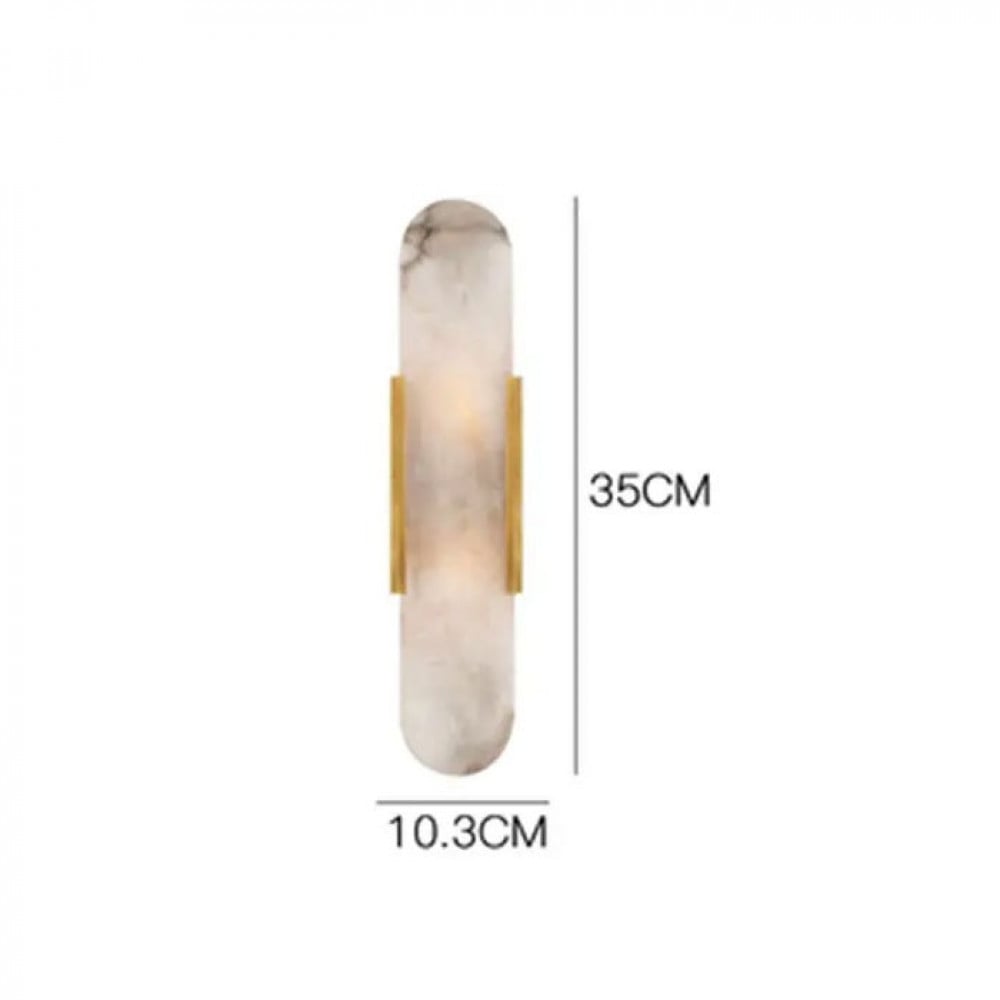 Add a touch of luxury and elegance to your walls with the White Curve Spanish Marble Wall Light. Its sleek rectangular design with rounded edges blends smooth sophistication with opulence, while the golden metallic strip adds warmth and refinement. Featuring two E14 bulbs, it delivers a warm and even light distribution, making it perfect for highlighting the architectural beauty of your space.
