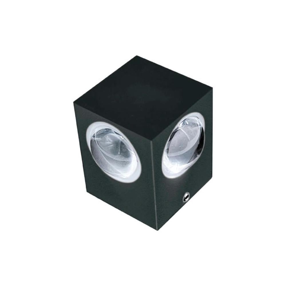This cube-shaped wall light features four precision optical lenses that distribute light evenly both upward and downward, creating a refined dual-beam lighting effect that enhances any exterior wall.