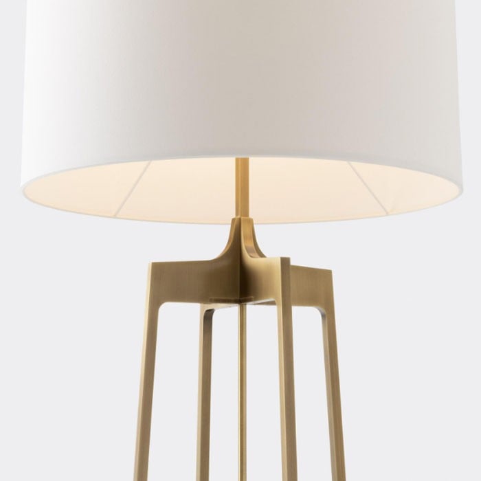 The AVIDON hotel-style floor lamp showcases a refined architectural-inspired design with a luxurious matte gold frame and three slender, geometric columns topped with an elegant off-white fabric shade. It provides warm, ambient lighting ideal for upscale interiors. Powered by a standard E27 bulb, it allows easy customization of brightness. With premium build quality and a 2-year warranty, the AVIDON lamp is the perfect combination of design sophistication and everyday practicality.