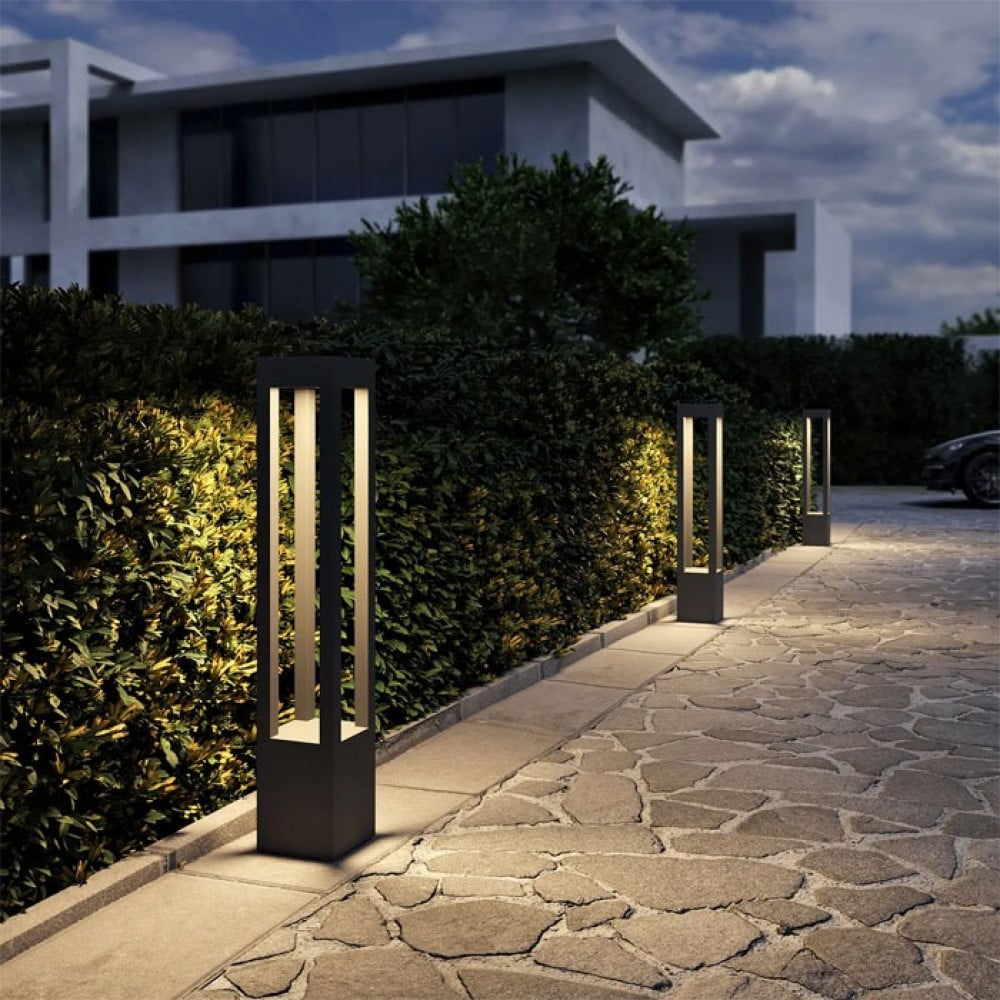 Outdoor Lighting Column for Gardens and Pathways Hollow Square Dark Gray Color