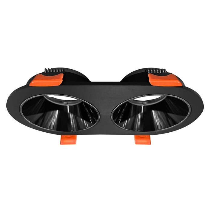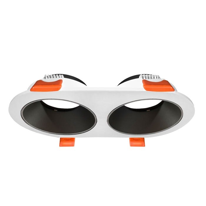 The R090 Double Round Aluminum Spotlight Frame is designed for those who appreciate elegance and functionality in interior lighting. It combines refined simplicity with functional precision, featuring a reflective inner surface that reduces glare and ensures even light distribution.