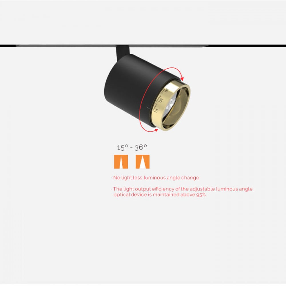 Add a luxurious touch to your lighting track with the Junior Magnetic Adjustable Black × Gold Spotlight, combining modern design with practical performance. Thanks to its variable beam angle from 15° to 35°, you can easily direct the light to highlight architectural or decorative details. Available in two models: 5W – 350 lumens and 10W – 700 lumens, both delivering warm 3000K light for a cozy and elegant ambiance.