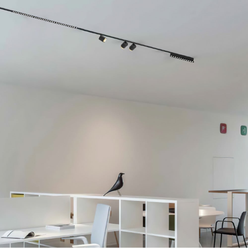 Easily mounts on the Junior Magnetic Track using a practical magnetic system, allowing quick adjustments and safe low-voltage 24V operation.