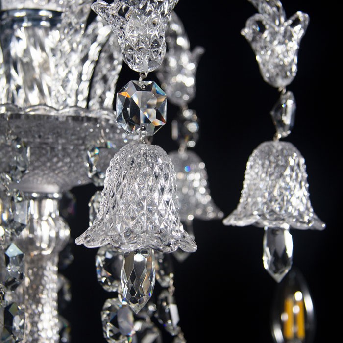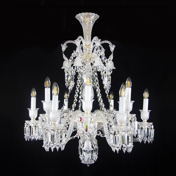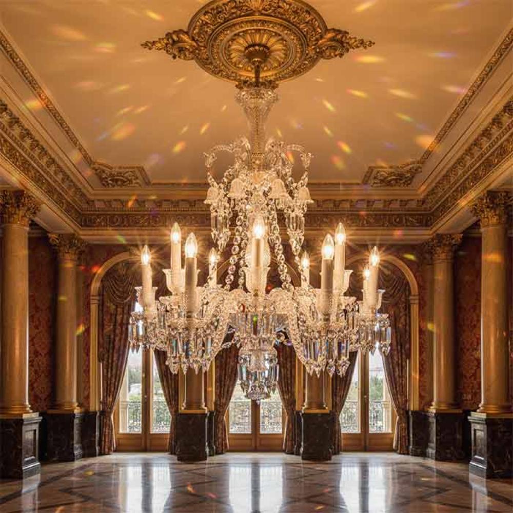 The 9031 Baccarat Classic Crystal Chandelier embodies the height of elegance in classic lighting design. Crafted from high-purity K9 crystal, this chandelier features intricate detailing and a luxurious silhouette that makes it a true centerpiece. Available in gold or chrome finishes, its gracefully curved arms are arranged with architectural precision to provide balanced, radiant illumination. More than just a light fixture, it is a statement of timeless beauty and sophistication.