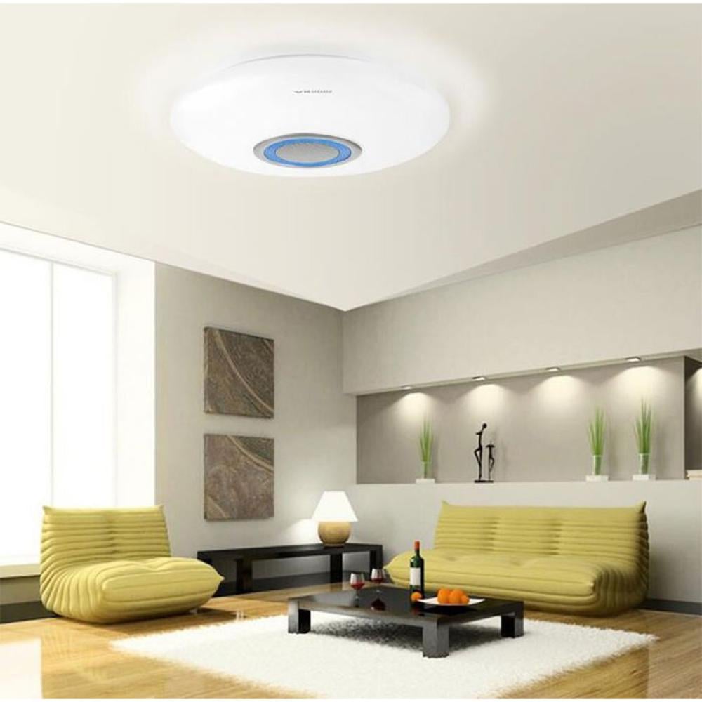 The Decorative Flush Mount with Bluetooth Speaker (B583) is a modern solution that combines smart lighting with high-quality sound in a single unit. With its elegant design and RGB color-changing technology, you can customize the room’s atmosphere to match your mood, while enjoying immersive audio from the built-in Bluetooth speaker. Featuring a 25W LED light and a powerful 30W speaker, it’s the perfect choice for those who value comfort and entertainment.