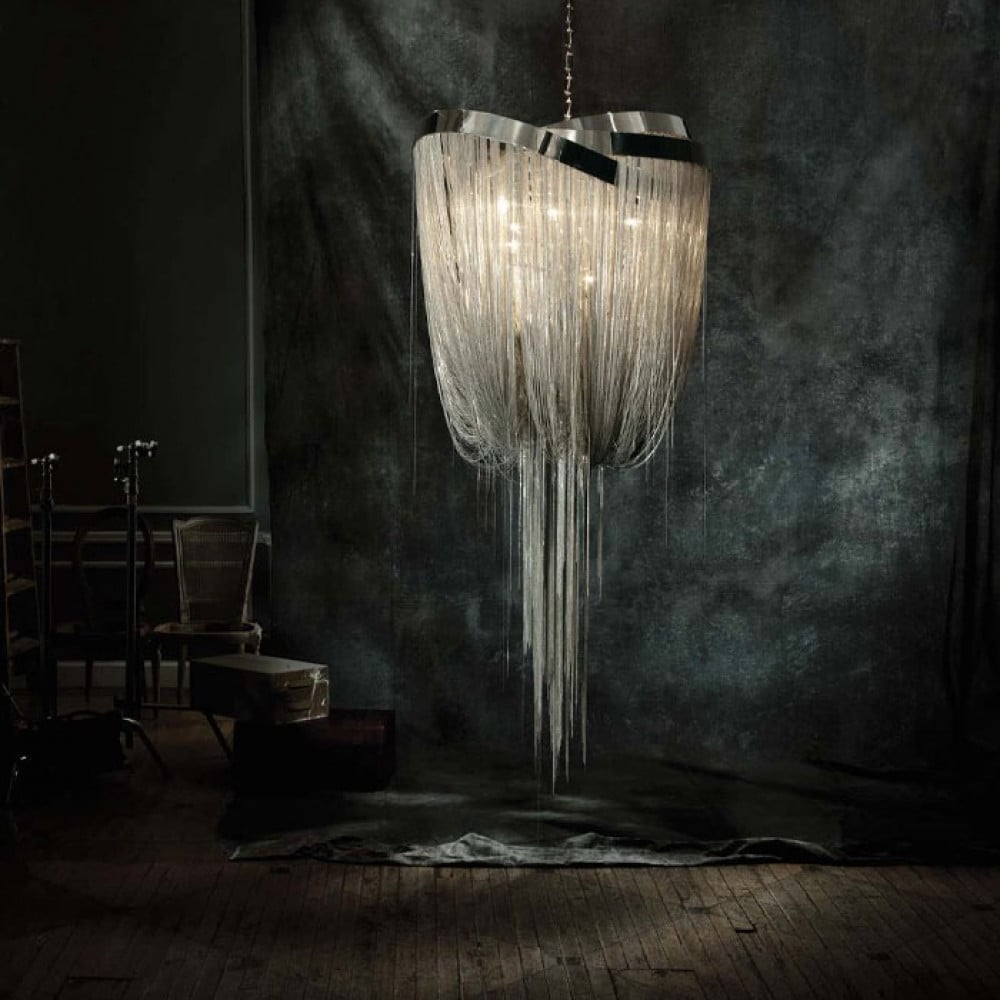 The Faten Chrome Chain Chandelier HS3205-600-CHROME is a luxurious addition to any space, combining modern design with classic elegance. It features a unique design that reflects light beautifully, adding a touch of sophistication to the room. Crafted from high-quality materials to ensure durability and excellent performance. Requires E14 bulbs to provide warm and comfortable lighting.