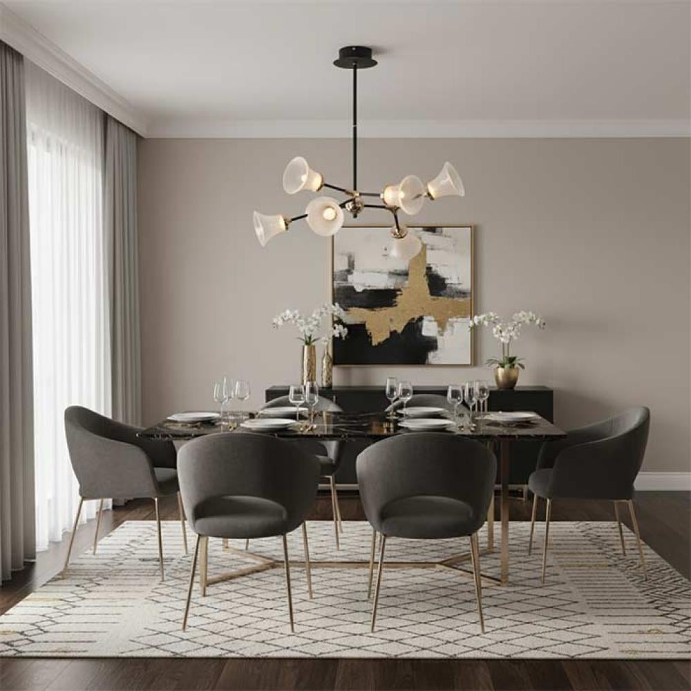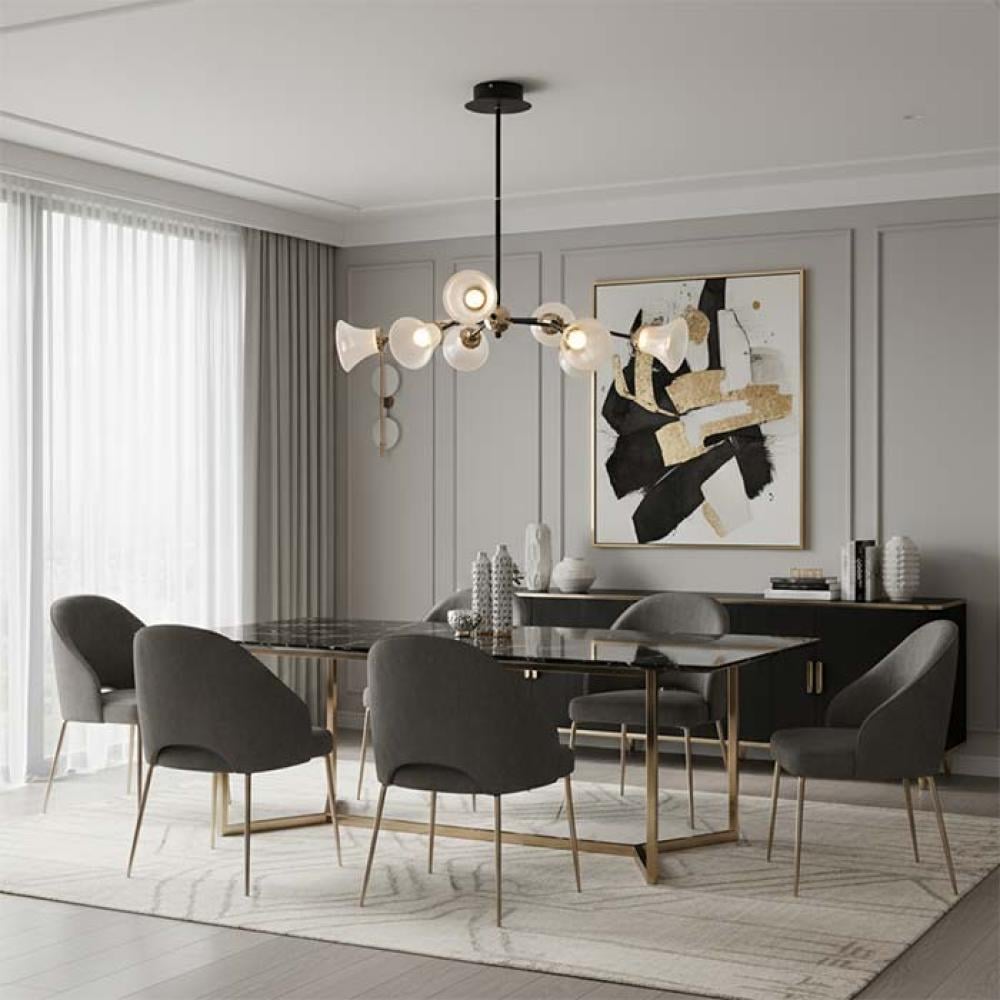 The Flora Chandelier beautifully blends modern design with classic luxury, featuring a bold black frame accented with elegant copper touches. Its clear glass shades reflect light attractively, providing either warm (3000K) or neutral (4000K) illumination to suit your preference. With its balanced design, this chandelier is the perfect choice for adding elegance and warmth to modern interiors.