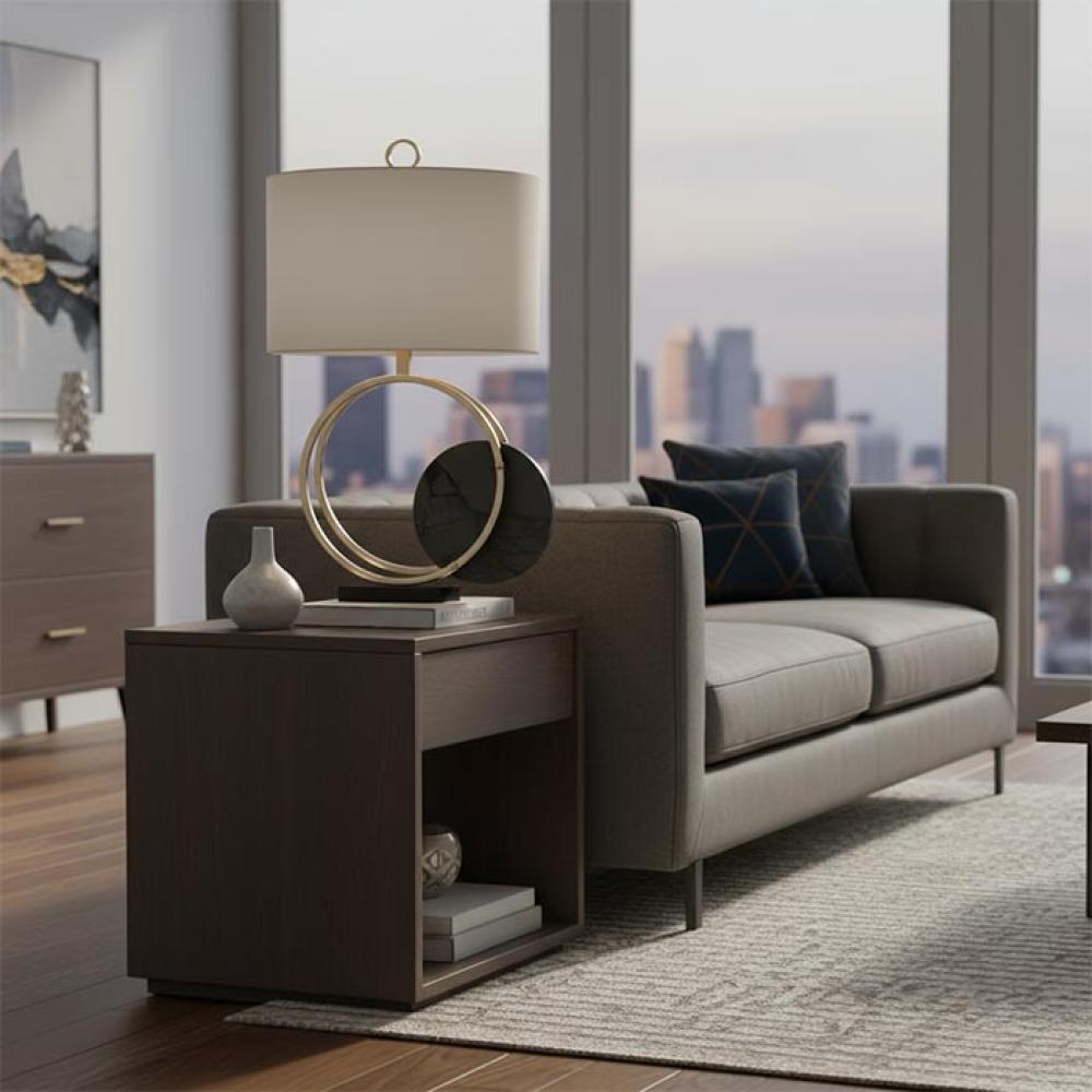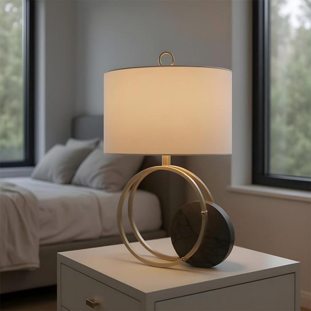 D4111 Black Marble Table Lamp with Gold Ring Accent – Luxurious Artistic Design