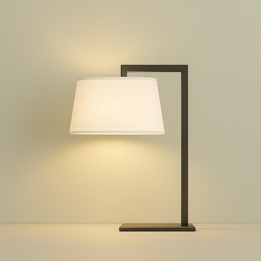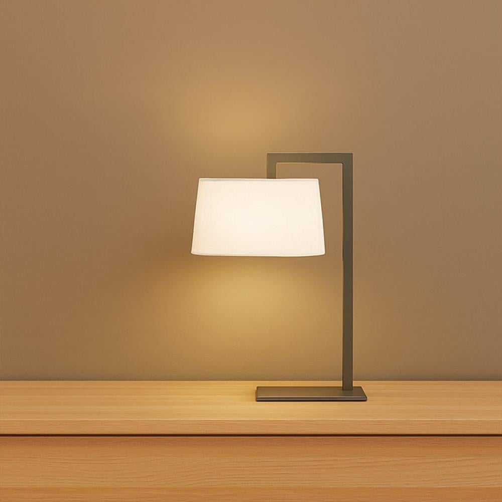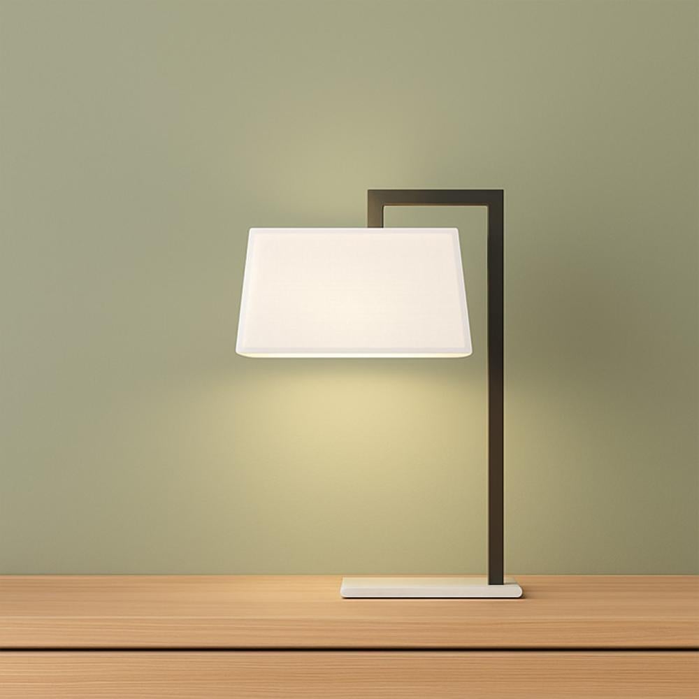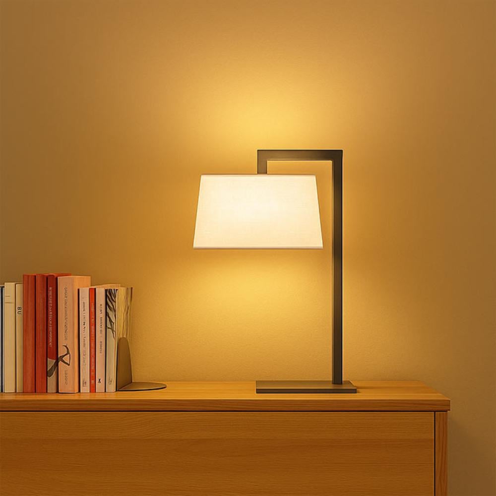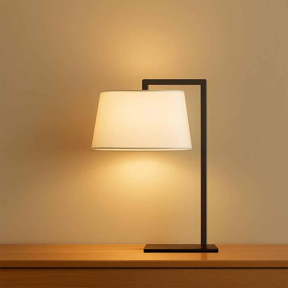 - Materials: Coated iron base + beige fabric shade