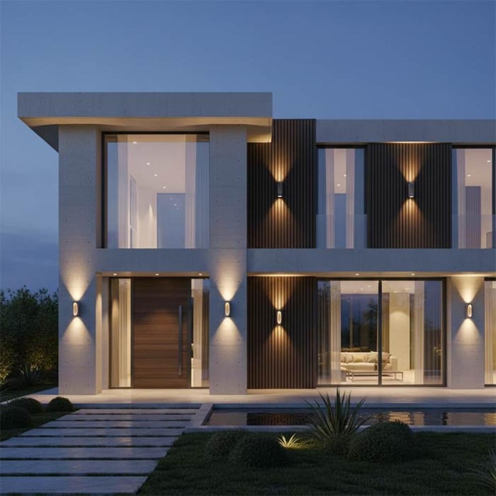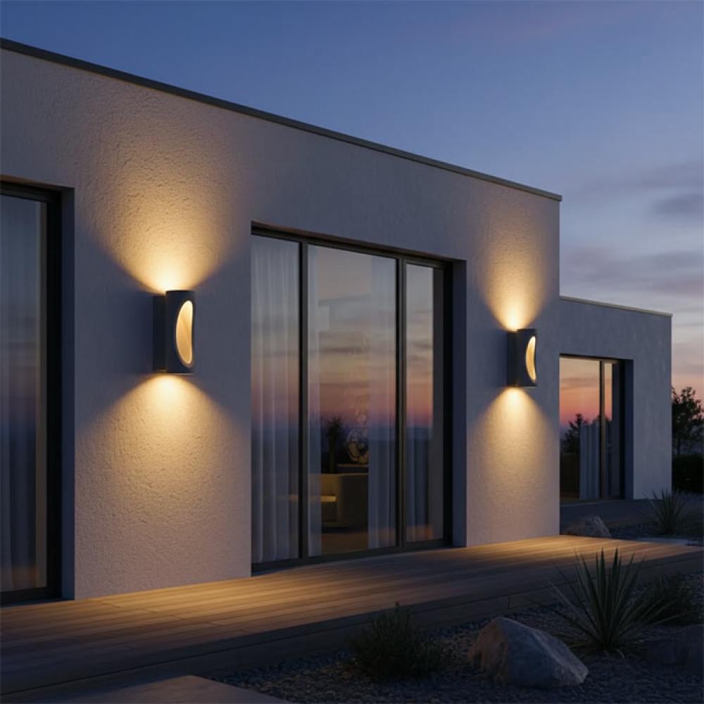 - Dual up-and-down lighting that enhances wall textures with smooth angles.