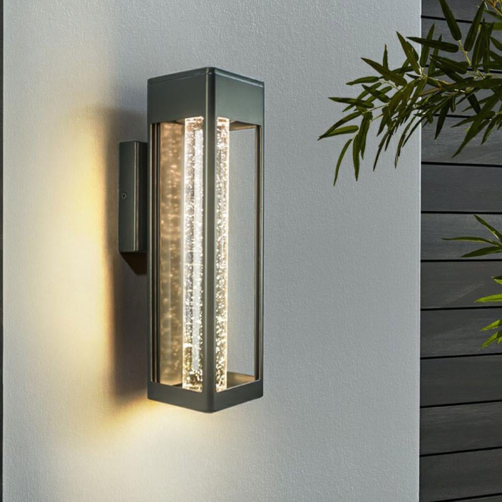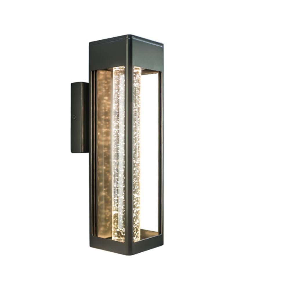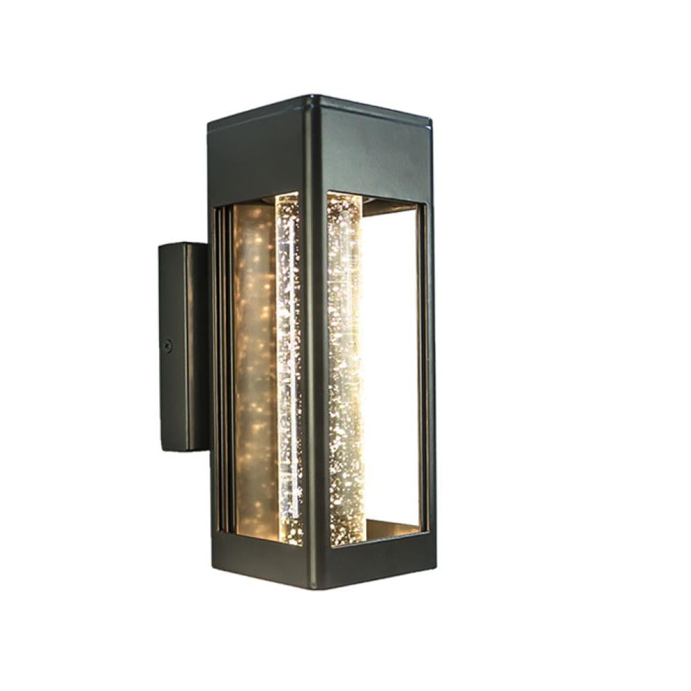 Add a sophisticated modern touch to your exterior spaces with the Sinsco-style wall light, Model 0397. This fixture combines a sleek iron-look aluminum body with textured bubble glass that diffuses warm light beautifully. Featuring an 11W built-in LED and warm white 3000K color temperature, it is available in three size options to suit a variety of outdoor applications.