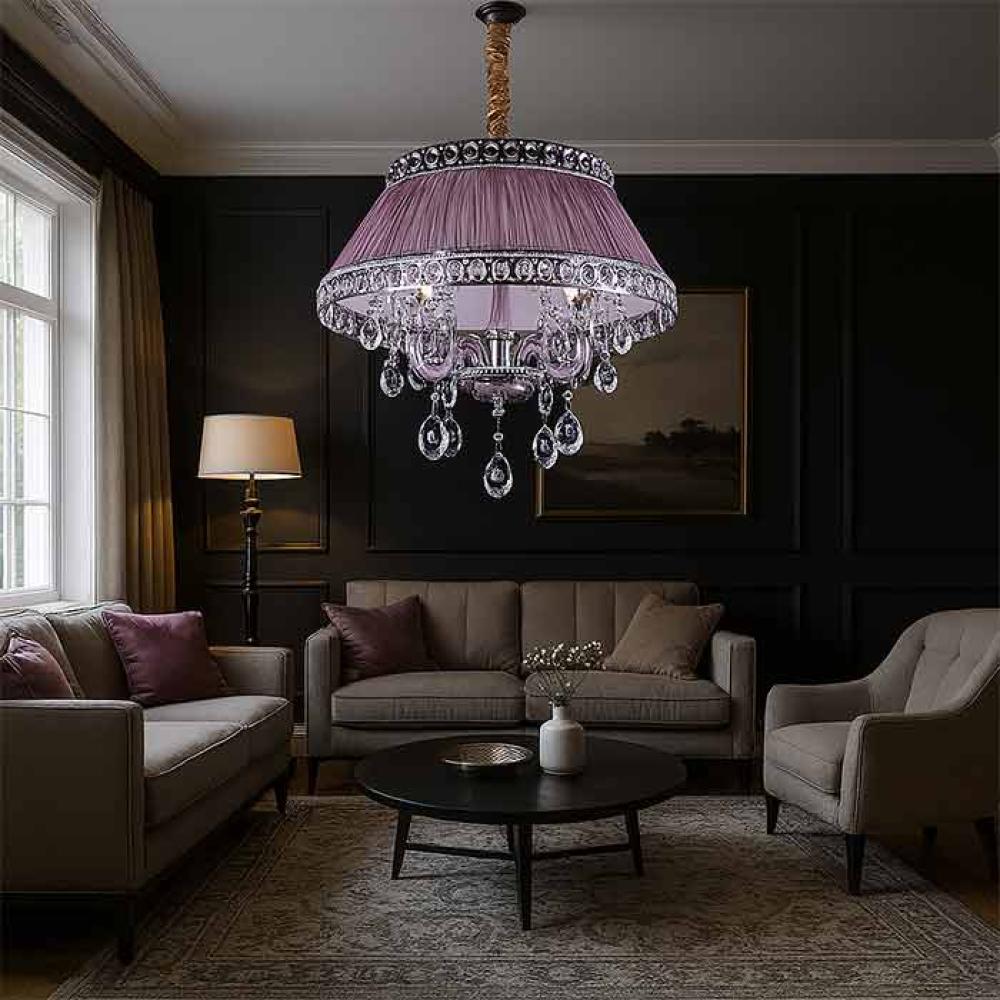 Because this chandelier gracefully blends the calm of mauve tones with the brilliance of crystal—ideal for those who seek soft luxury in every detail. With high-quality materials and exquisite craftsmanship, the Model 6661 offers long-lasting elegance and a rich visual experience that elevates the ambiance of your most cherished spaces.