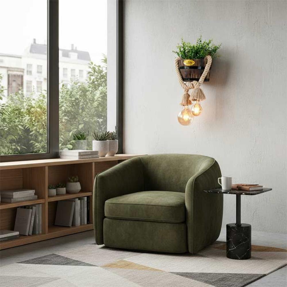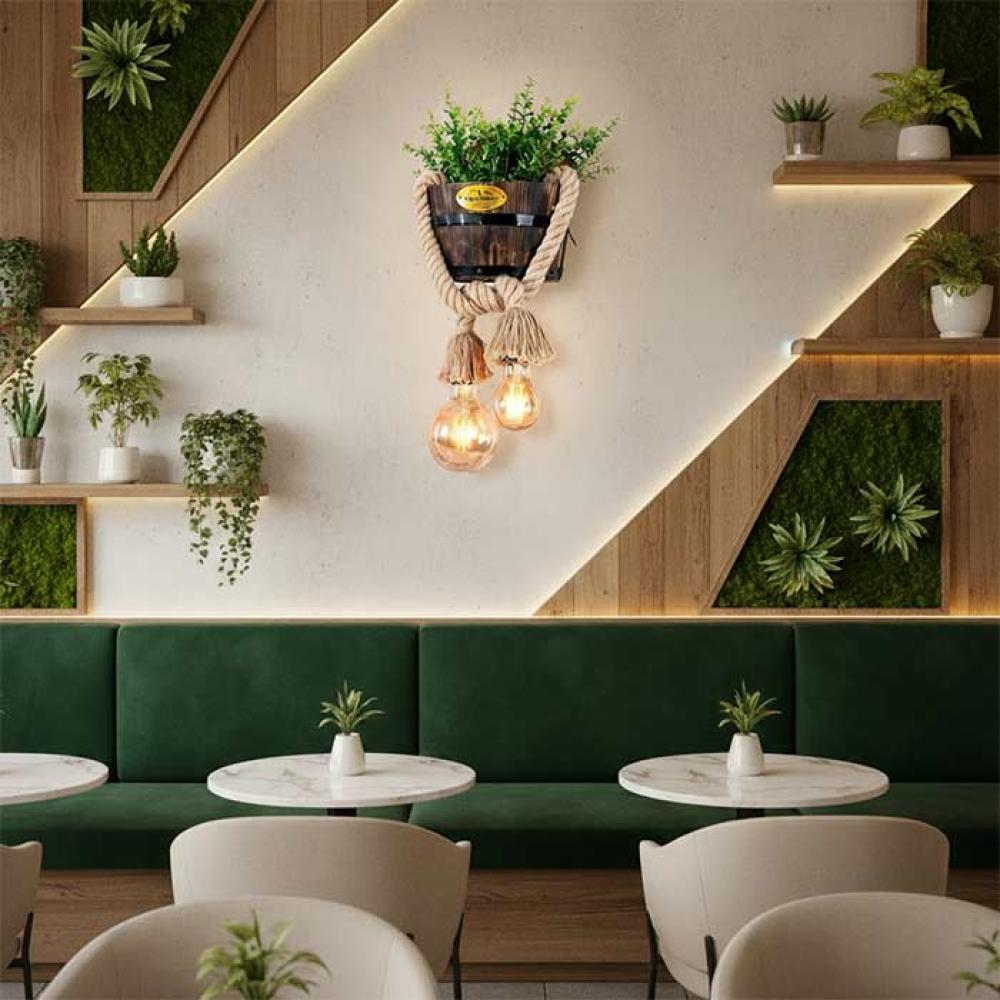 The 8075-2 Rope Wall Sconce blends rustic charm with modern aesthetics. Crafted with a vintage-style wooden bucket base, it features two twisted natural ropes holding dual light sockets—creating a warm and cozy lighting effect.