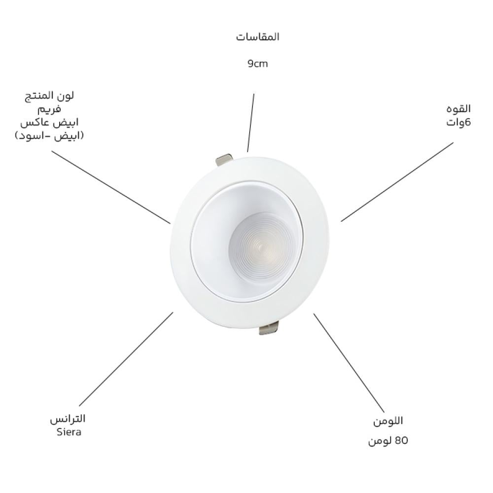 ى 6W Recessed LED Downlight from Siera – Model 4416White Frame × Black Reflector | Anti-Glare | Elegant Design