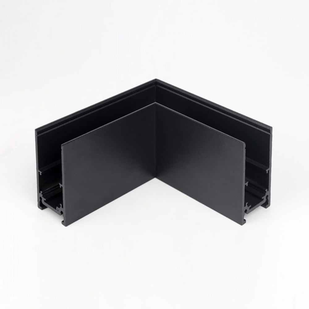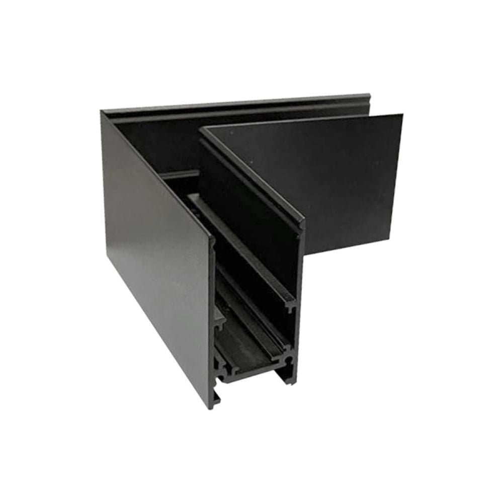 The Good Magnetic Track 0139 Horizontal 90° Corner Connector, surface-mounted design in black, is the perfect piece for joining two magnetic lighting tracks at a right angle. Its exposed design allows for easy installation and maintenance. Crafted with precision from high-quality aluminum, it offers long-lasting durability and a sleek modern look that complements various interior styles.